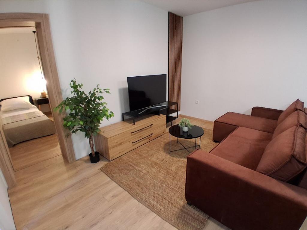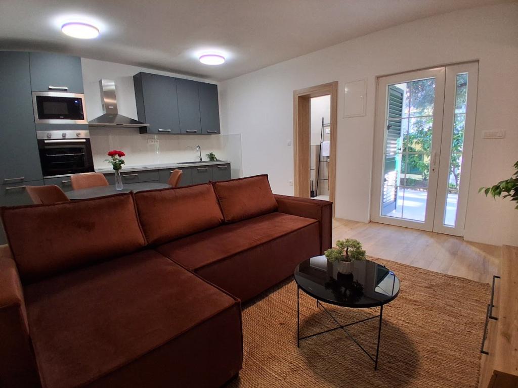 Komplett und modern ausgestattetes großes Apartment mit zwei Schlafzimmern, Meerblick und großer überdachter Terrasse – gesamte Etage und Apartment mit einem Schlafzimmer im Erdgeschoss mit einer wunderschönen Terrasse. Das Apartment mit zwei Schlafzimmern besteht aus zwei Schlafzimmern mit Doppelbetten, einem Badezimmer, einer geräumigen Küche und einem Wohnzimmer mit einem Sofa, das bei Bedarf in ein Bett umgewandelt werden kann. Das Apartment mit einem Schlafzimmer besteht aus einem Zimmer mit Doppelbett plus Zustellbett für eine dritte Person. Es besteht auch die Möglichkeit eines Schlafsofas im Wohnzimmer. 5-7 Minuten vom schönen Strand und der Strandbar entfernt; Entfernung zum Zentrum ca. 10 Minuten zu Fuß. Im Preis inbegriffen sind Parkplatz, WLAN, Klimaanlage in jedem Zimmer, Handtücher, Waschmaschine und Geschirrspüler, Toilette, Wasserkocher, Kaffeemaschine (Apartment mit zwei Schlafzimmern), Haartrockner, Bügeleisen und Bügelbrett (Apartment mit zwei Schlafzimmern).