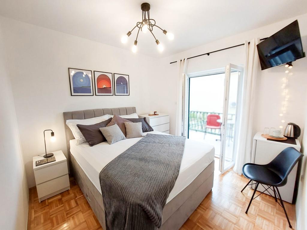 Die Wohnung befindet sich in der Nähe des Strandes, ca. gelegen. 1-2 Gehminuten. Klimaanlage in beiden Räumen mit einer separaten Fernbedienung, Balkon zum Biokovo, super Parkplatz. Bosses waren sehr höflich und angenehm. Apartment empfehlen kann.