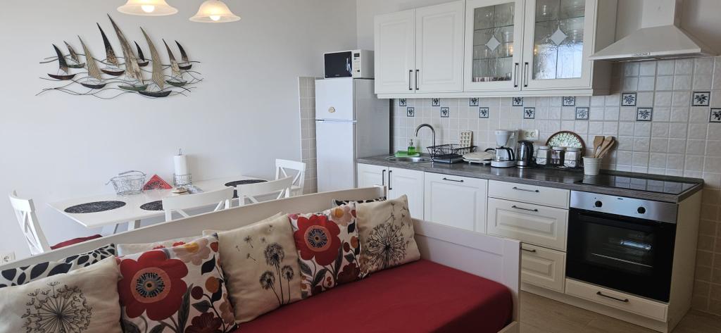 Wohnung modern mit hohem Stil ausgestattet, mit allem, was Sie brauchen, um sich wie zu Hause zu fühlen, Sauberkeit auf dem Niveau, die Gastgeber freundlich und für jede Antwort auf Ihre Frage zur Verfügung, begrüßte uns mit Eis für Kinder, half Koffer zu bringen ... Wohnung mit schönen Meerblick, unvergessliche Sonnenuntergänge, ein paar Schritte zum Strand, sehr angenehme Atmosphäre, Ruhe für die Seele, klares Meer ... ein Ort, an den Sie immer wieder zurückkehren möchten ...