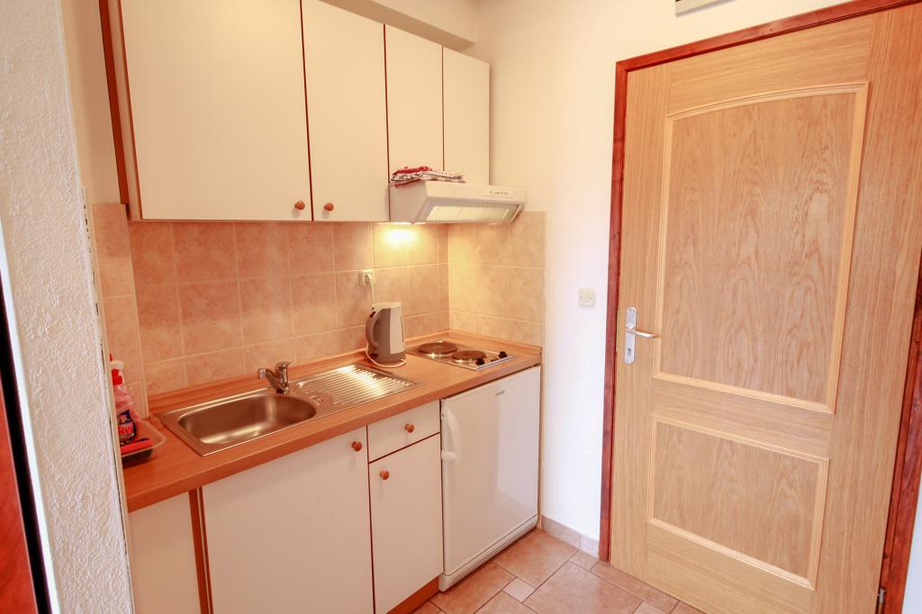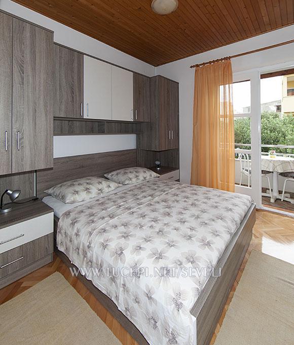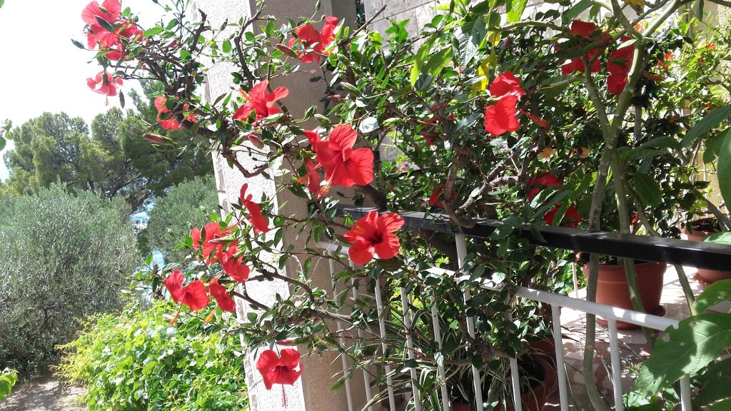 Villa Ševelj liegt 10 m vom Strand entfernt, erste Reihe zum Meer. Ruhiger Garten mit Olivenhain und Parkplatz, Kinderspielplatz und Tischen im Schatten.