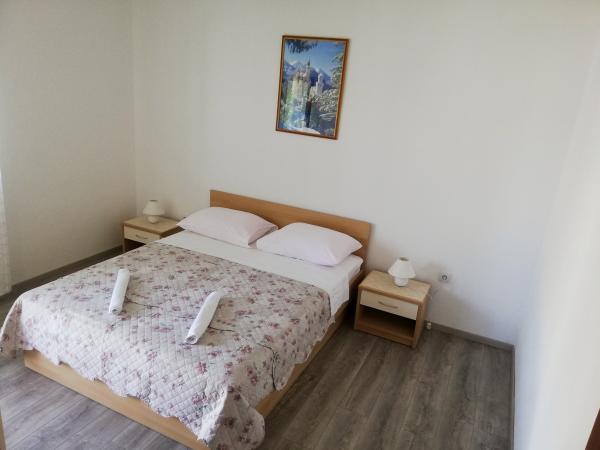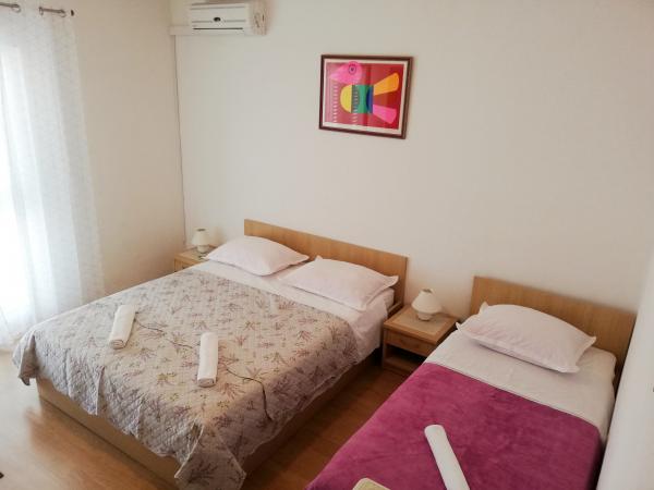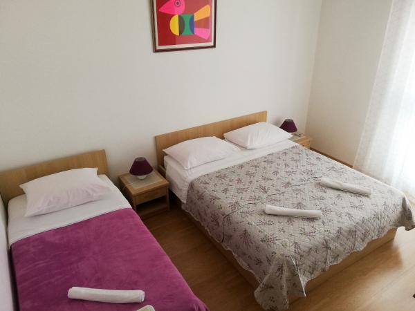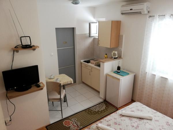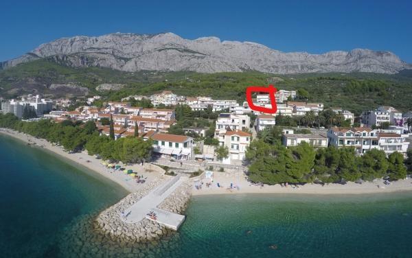 Modern ausgestattete Apartments und Zimmer in der Nähe von Makarska, 100 m vom Meer entfernt. Die Anlage befindet sich in Tucepi, 5 Gehminuten vom Stadtzentrum entfernt. Es befindet sich auf einer Anhöhe, von der aus die Unterkunft einen wunderschönen Blick auf das Meer und den einzigen Ort hat. In der Unterkunft gibt es ein Apartment für 4 oder 5 Personen, ein Studio für 2 Personen und zwei Zimmer für 3 Personen. Der Preis beinhaltet Internet, Klimaanlage und Parkplatz.