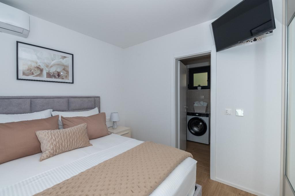 Wir vermieten ein modern eingerichtetes und voll ausgestattetes Apartment mit 100 m² in Tučepi, ideal für einen Familienurlaub. Das Apartment verfügt über zwei Schlafzimmer, zwei Badezimmer, ein geräumiges Wohnzimmer mit Küche und Essbereich sowie eine große Terrasse mit Panoramablick auf das Meer und die Inseln. Das Apartment ist klimatisiert und verfügt über kostenloses WLAN, TV, Waschmaschine und Geschirrspüler. Parkplätze stehen vor dem Haus zur Verfügung. Der Strand ist nur 5 Gehminuten entfernt. Wenn Sie eine komfortable Unterkunft mit kristallklarem Meer und einer schönen Promenade suchen, ist unser Apartment der perfekte Ort für Ihren Urlaub.