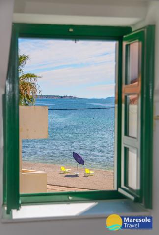 Moderne Wohnungen befinden sich im ersten Stock und im zweiten Stock (Dachgeschoss) in einem Hause in der Mitte, auf der ersten Linie zum Strand, das Meer. Appartements besteht aus einem Wohnzimmer mit Küche und Esszimmer in einem, eine Wohnung mit einem Balkon mit Meerblick, ein Schlafzimmer mit Doppelbett, Bad mit Dusche / WC. Parken im öffentlichen Raum vor dem Haus. - Zuschlag für Haustiere E5, 00 pro Tag.