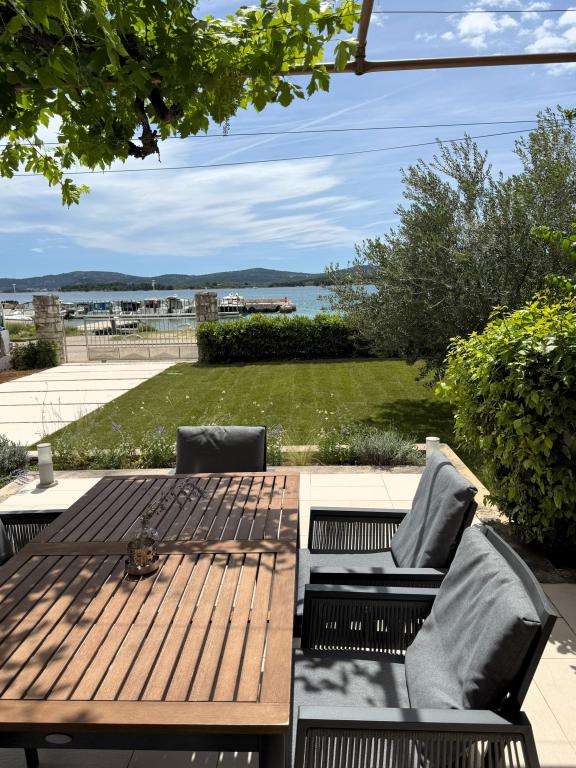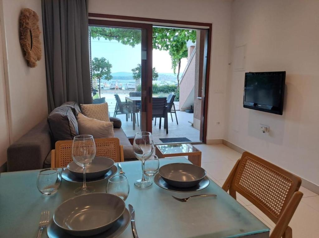 Die komplett und modern ausgestatteten Apartments befinden sich in ruhiger Lage direkt am Meer. Jedes Apartment verfügt über einen Balkon oder eine Terrasse mit Meerblick, einen privaten Parkplatz und einen Außenbereich. Strand, Geschäfte, Restaurants, Cafés, Bäckerei und weitere Einrichtungen sind maximal 10 Gehminuten entfernt – alles, was Sie für einen angenehmen Aufenthalt benötigen, ist bequem zu Fuß erreichbar. Ein besonderes Highlight ist der private Bootsanleger direkt vor dem Apartment, geeignet für Boote bis zu 7 Metern Länge. Das Boot ist an einer Boje und einem Steg festgemacht und ermöglicht so ein sicheres und einfaches Anlegen. Die Unterkunft ist ideal für Familien, die einen ruhigen Urlaub am Meer verbringen und gleichzeitig alle Annehmlichkeiten in unmittelbarer Nähe nutzen möchten, ohne auf ein Auto angewiesen zu sein.