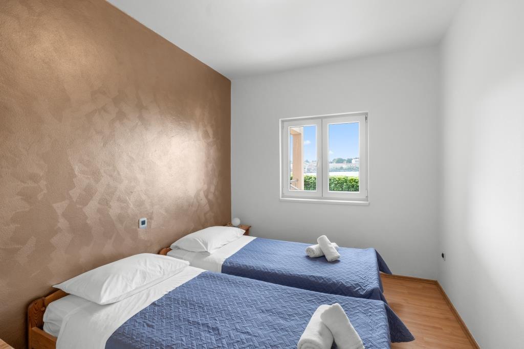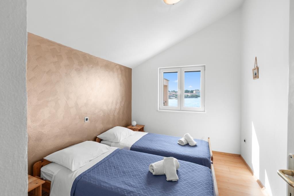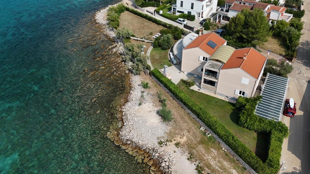 Die Apartments liegen direkt am Meer in einer ruhigen und freundlichen ländlichen Umgebung. Jede Wohnung verfügt über eine große Terrasse mit Meerblick. Sie sind von einem angelegten mediterranen Garten umgeben, der zum Spielen für Kinder geeignet ist. Im Garten stehen Sonnenliegen und ein gemeinschaftlicher Grill zur Verfügung. Jede Wohnung verfügt über 2 Badezimmer. In der Nähe, nur 5 Gehminuten entfernt, liegt das Zentrum, wo es einen Markt mit Produkten von Bauernhöfen aus der Umgebung sowie Geschäfte und Restaurants gibt. Die medizinische Notfallhilfe steht rund um die Uhr zur Verfügung. Der Strand direkt vor der Wohnung ist ein Kieselstrand, in der Nähe gibt es mehrere Strände, darunter auch einen Sandstrand. Anreise mit dem Auto: Die Autobahn führt direkt zum Fährhafen Gaženica. Danach besteigen Sie die Fähre nach Preko. Im Sommer verkehren die Linien häufig und mindestens stündlich. Vom Fährhafen Preko nehmen Sie die Hauptstraße der Insel, um in die 10 km entfernte Stadt Ugljan zu gelangen. Anreise mit dem Flugzeug: Vom Flughafen Zadar mit dem Bus oder Taxi in 15 Minuten. Sie kommen direkt am Fährhafen von Gaženica an, wo Sie die Fähre nach Preko besteigen.