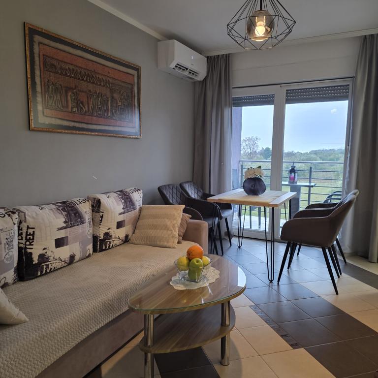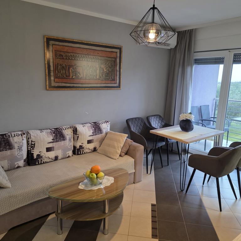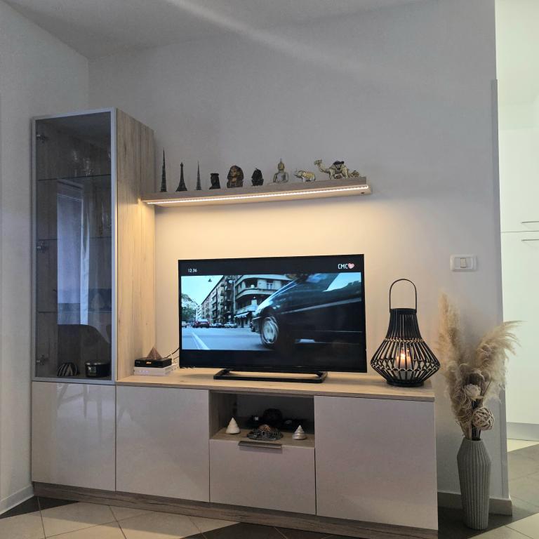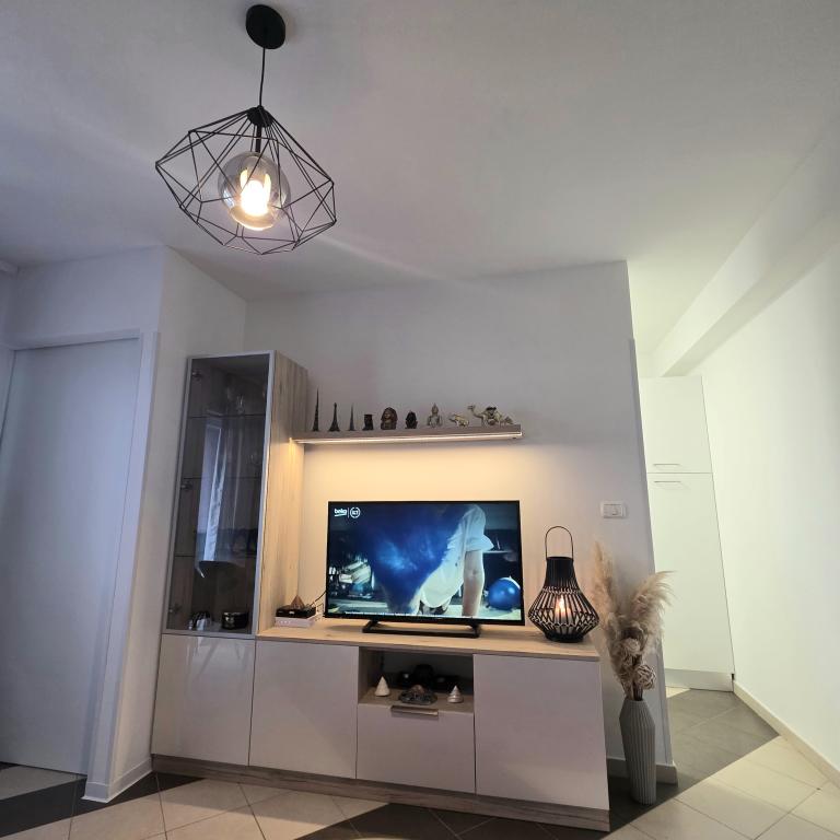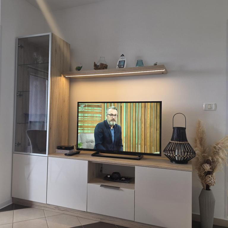 Die Apartments Mirella 4 befinden sich in der neu erbauten Residenz Lavender mit Meerblick und herrlichem Blick auf den Sonnenuntergang. Zum Meer und zum schönen Sandstrand sind es nur 150m. Geschäfte, Bäckerei und Restaurants auf 200m. Zum Zentrum von Umag 3 km. Entlang des Meeres gibt es eine Promenade bis ins Zentrum von Umag und die Möglichkeit ist der Transport mit dem Touristenzug. Die Apartments sind klimatisiert und mit allen Geräten ausgestattet. Badezimmer mit Massagedusche, Waschmaschine, Haartrockner, Bügeleisen. Küche mit Geschirrspüler, Mikrowelle, Kaffeemaschine, Wasserkocher, großem Kühlschrank mit Gefrierfach und allem anderen, damit sich die Gäste wie zu Hause fühlen. Kostenloses Internet und gesicherte Parkplätze stehen zur Verfügung. Der Preis beinhaltet die Nutzung des Pools, der Liegestühle, der Dusche, des Zweisitzers, des Tisches und der Stühle im überdachten Teil der Terrasse am Pool. Vielen Dank, dass Sie sich für Apartments Mirella entschieden haben. Ich hoffe, dass wir im Gegenzug Ihre Wünsche während Ihres Aufenthalts in unseren Apartments erfüllen werden. Unser Ziel ist Ihre Zufriedenheit und Empfehlung. Liebe Gäste, willkommen in den Apartments Mirella!