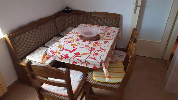Die Wohnung befindet sich im Gebäude befindet, auf der zweiten Etage, in der Siedlung Moela, weg von den wichtigsten Einrichtungen: Post, Krankenhaus, Notaufnahme und Shop ist über 2oo m Der Strand ist etwa 200 Meter von der Wohnung entfernt.. Es ist ausgestattet mit Sportanlagen und eine Dusche und für Behinderte zugänglich gemacht werden. Es ist umgeben von Pinien. Die Wohnung verfügt über 2 Schlafzimmer mit Doppelbetten, Wohnzimmer mit Zusatzbett für zwei Personen, Küche, Bad mit Dusche und Waschmaschine, eine kleine Halle und Terrasse. Es ist ausgestattet mit einem Kühlschrank, Klimaanlage, Satelliten - TV, Wi-Fi, Bettwäsche, Handtücher inklusive. Parken ist direkt vor dem Gebäude und ist kostenfrei. Mit dem Gebäude gibt es einen Parkplatz 20 mi frei gelegen.