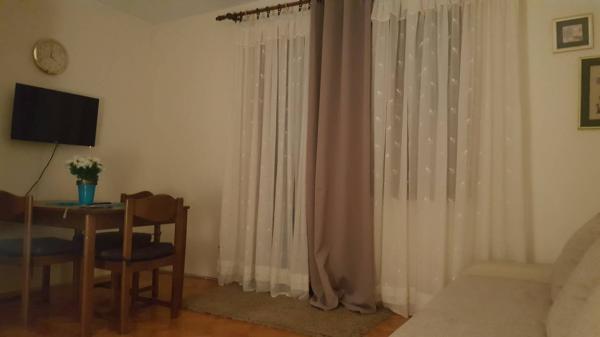 Die Wohnung befindet sich 70 m vom Strand entfernt und verfügt über einen herrlichen Blick von der Terrasse auf das Meer. Wir sind eine warme und gemütliche Wohnung, ideal für diejenigen, die eine ruhige und komfortable Unterkunft für Sommerurlaub. Die Wohnung befindet sich in Vinisce, einem kleinen Fischerdorf, in einer wunderschönen Bucht mit kristallklarem Wasser, von Trogir befindet sich nur 20 km. Die Wohnung ist 59 qm groß und bietet Platz für 6 Personen. Es besteht aus zwei Schlafzimmern, Wohnzimmer, Küche, Badezimmer und eine große, sehr schöne Terrasse. Apartment bietet WLAN-Internetzugang, Kabelfernsehen und Klimaanlage. Beide Schlafzimmer verfügen über ein Doppelbett, ein Wohnzimmer hat ein Schlafsofa für zwei Personen geeignet. Die Küche ist komplett ausgestattet und verfügt über eine Spülmaschine, Kühlschrank, Waschmaschine. Überdachte Parkplätze.