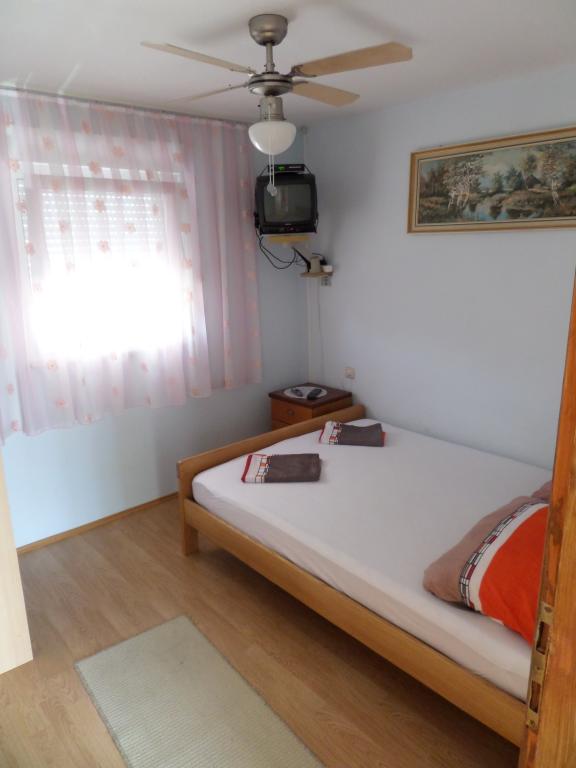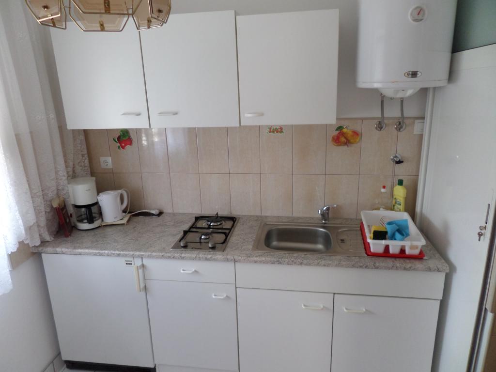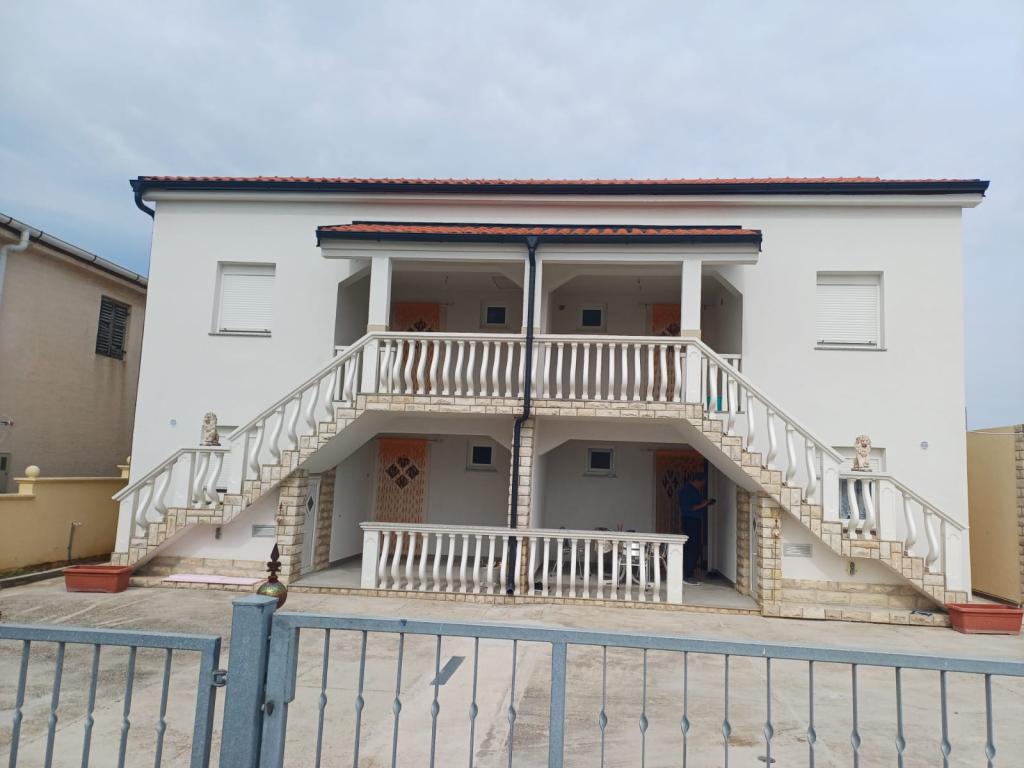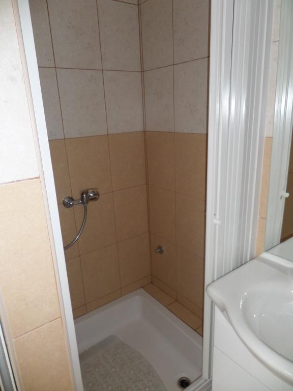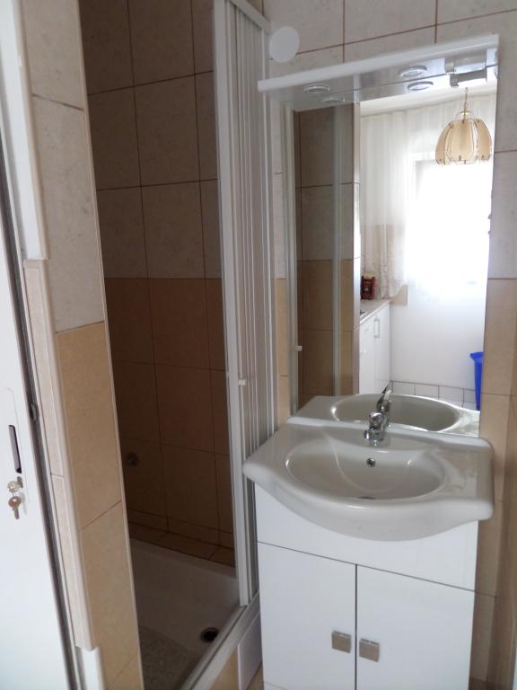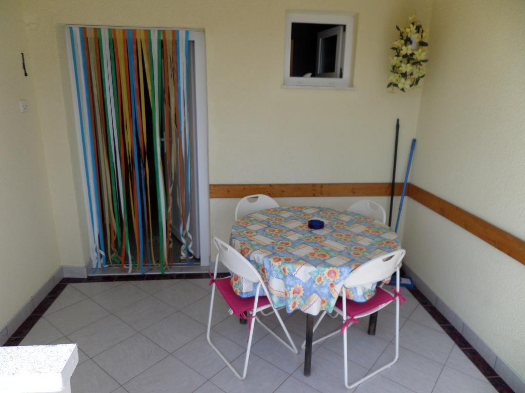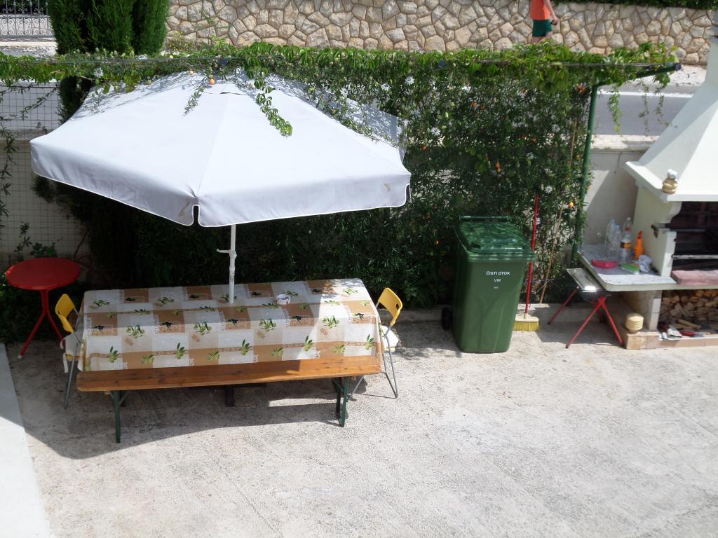 Das Haus besteht aus vier Wohneinheiten, zwei pro Etage. Insgesamt stehen drei Wohnungen zur Miete bereit: zwei im Obergeschoss und eine im Souterrain. Alle Wohnungen sind identisch ausgestattet mit zwei Schlafzimmern, einer Terrasse, einem Flur, einer voll ausgestatteten Küche und einem Badezimmer. Jede Wohnung verfügt über einen LCD-Fernseher mit Satellitenempfang und eine Klimaanlage. Ein Grillplatz und eine Sitzecke im Garten stehen zur allgemeinen Nutzung bereit. Jede Wohnung hat zudem eine eigene Terrasse oder einen Balkon. Die nahegelegenen Strände bestehen größtenteils aus Kieselsteinen, das Wasser hingegen aus feinem Sand. Besonders geeignet für Familien mit Kindern. Klimaanlage: 1 €/Stunde extra.