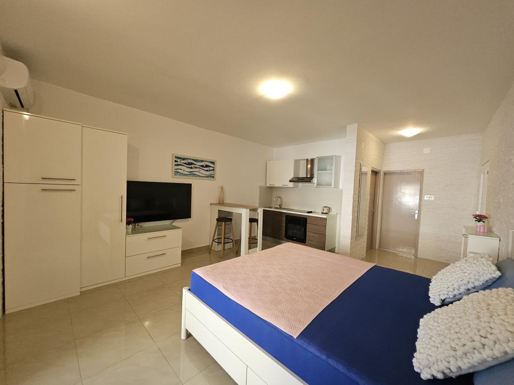 Meine Freunde und ich verbrachten zwei Wochen in allen drei Wohnungen, die sauber und geschmackvoll eingerichtet waren. Der Hof ist sehr schön angelegt und groß. Sehr nah am Strand, aber die Sauberkeit des Wassers lässt zu wünschen übrig. Ein paar Strände weiter ist das Wasser kristallklar, daher empfehle ich, etwas weiter zu gehen und die Klarheit des Wassers zu genießen. Gute Auswahl an Restaurants und Geschäften. Die Besitzer selbst erwiesen sich als sehr nette Leute, die immer bereit waren zu helfen. Ich empfehle DeLuxe Apartments zu 100%. Grüße an Ivana und Daniel