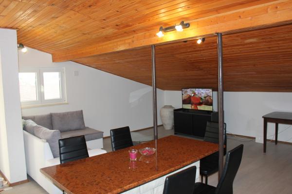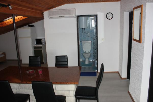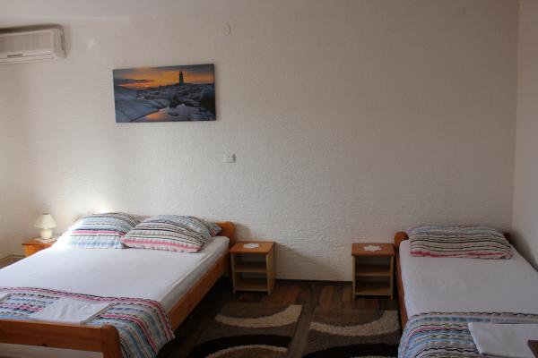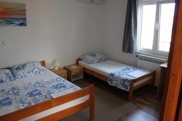 - Haus mit 3 Wohnungen. Zwei Apartments (A1, A2) befinden sich im ersten Stock, während sich das dritte (A3) im zweiten Stock befindet. A1 und A2 haben drei Betten in einem Schlafzimmer mit einem Doppelbett und einem Einzelbett. Beide haben eine Küche mit Balkon und ein kleines Badezimmer. A3 hat zwei Schlafzimmer mit 4 Betten, kleine Küche und Bad. Alle Wohnungen verfügen über WLAN, TV, Klimaanlage, Kühlschrank, Mikrowelle, Wasserkocher und Parkplatz. Das Haus befindet sich 300 m vom Meer / Strand Lučica und 250 m vom Supermarkt entfernt. Wasser aus der Pfeife ist nicht zum Trinken bestimmt.