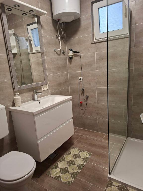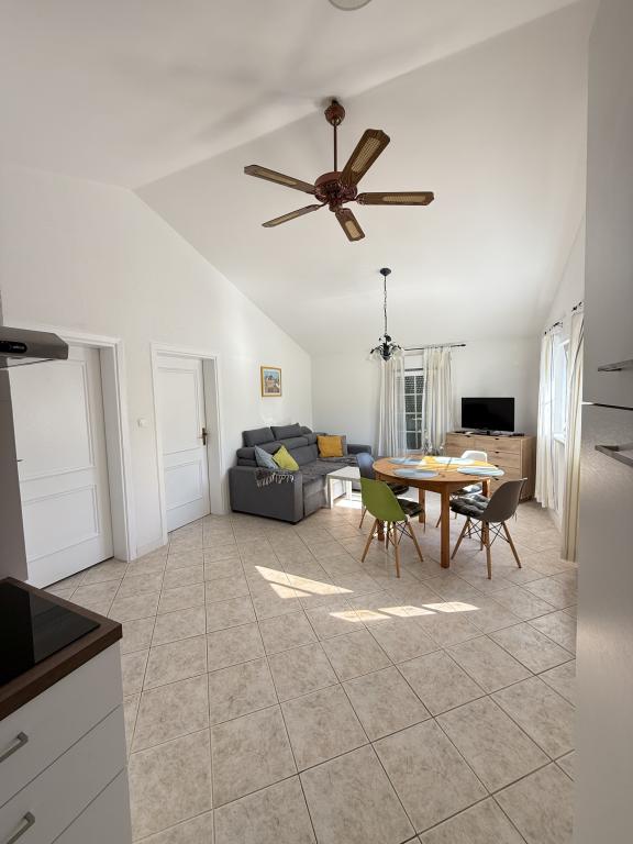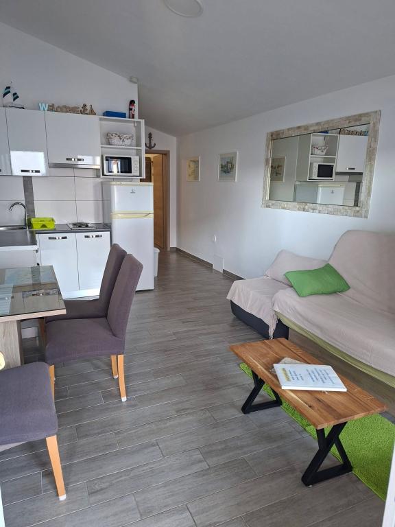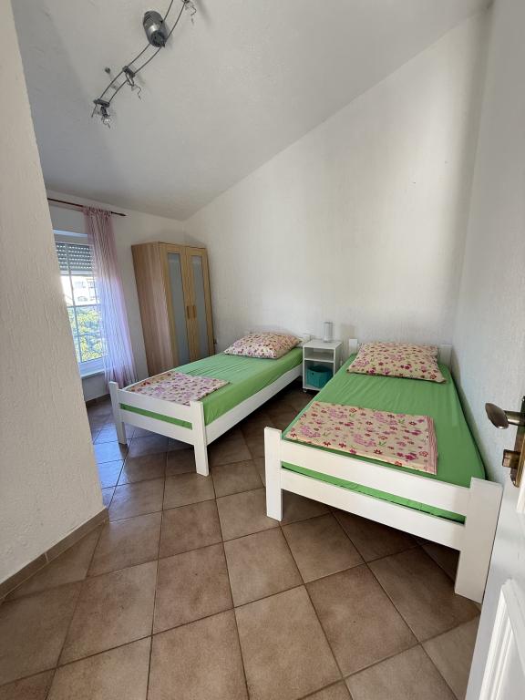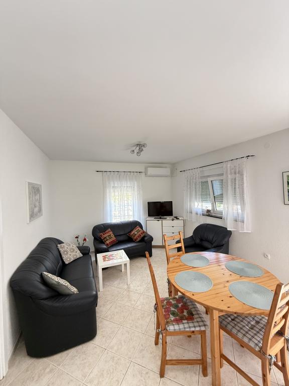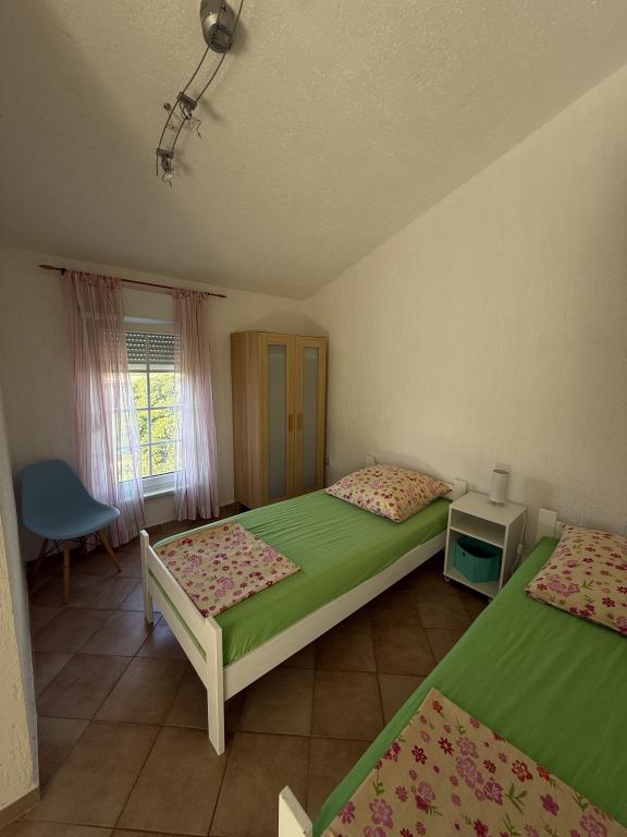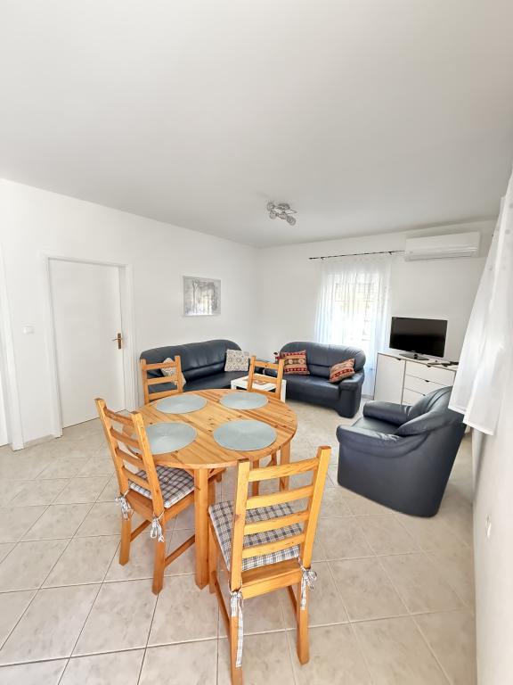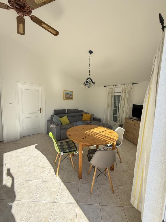 Auf der Insel Vir, nur 150 Meter vom Meer entfernt, befinden sich zwei Apartments mit einer Kapazität für bis zu 5 Personen. Die Apartments sind modern ausgestattet, klimatisiert und für einen komfortablen Aufenthalt angepasst. Jedes Apartment verfügt über eine eigene Terrasse mit Sitzbereich und im umzäunten Hof stehen den Gästen private Parkplätze und ein Grill zur Verfügung. Die Nähe zum Meer und zum Strand sowie praktische Annehmlichkeiten machen diese Apartments zu einer geeigneten Wahl für Familien und kleine Gruppen von Freunden, die eine Unterkunft in unmittelbarer Nähe aller wichtigen Einrichtungen suchen. Die Apartments bieten Platz für bis zu 5 Personen. Sie bestehen aus zwei Schlafzimmern, die Apartments verfügen über ein Badezimmer mit Dusche und Waschmaschine sowie eine voll ausgestattete Küche, die mit dem Wohnzimmer verbunden ist. Zum Entspannen und Leben im Freien gibt es auch eine Terrasse mit Sitzbereich. Die Apartments sind klimatisiert und modern eingerichtet, ideal für einen Familienurlaub oder einen Aufenthalt in einer kleineren Gruppe von Freunden.