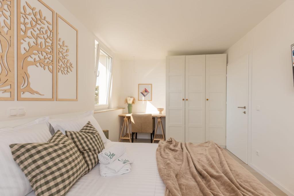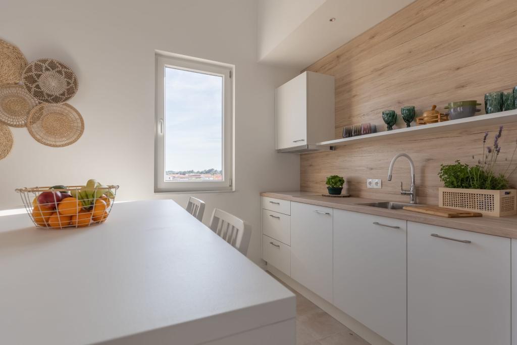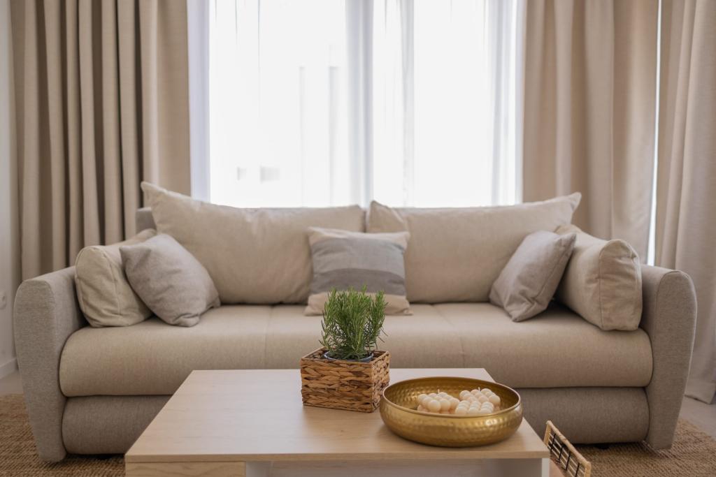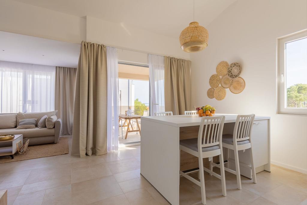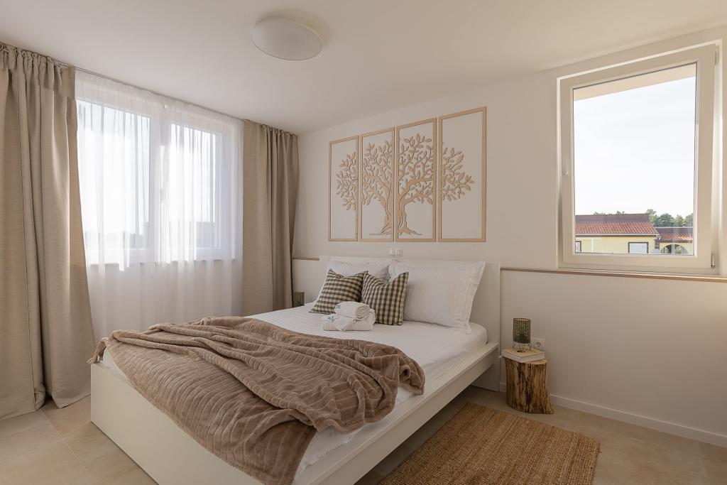 Unsere luxuriösen Apartments befinden sich in zentraler Lage, in unmittelbarer Nähe zu Restaurants, Geschäften und Sehenswürdigkeiten – die perfekte Wahl für einen unbeschwerten Urlaub ohne Auto. Der Strand ist nur wenige Gehminuten entfernt. Das Gebäude ist ein Neubau und besticht durch stilvolle, elegante und hochwertige Ausstattung. Die geräumigen und luxuriös eingerichteten Apartments bieten höchsten Komfort und verfügen jeweils über einen Balkon oder eine Terrasse, die zum Entspannen einlädt. Die sorgfältig gestalteten Innenräume mit natürlichen Materialien schaffen eine angenehme, warme und stilvolle Atmosphäre. Direkt am Gebäudeeingang stehen Ihnen private Parkplätze zur Verfügung, was Ihren Aufenthalt zusätzlich erleichtert. Diese Apartments sind ideal für Gäste, die eine erstklassige Lage, modernen Luxus und ein behagliches Zuhause suchen.