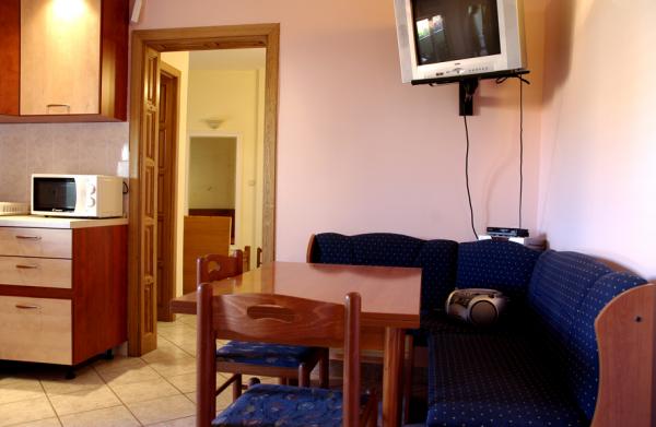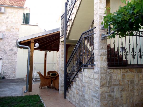 Komplett ausgestattete Apartments im Zentrum von Vodice, in der Nähe des Jachthafens, des Lebensmittelmarktes, des Warenlagers, der Apotheken, der medizinischen Ambulanzen, der Post, der Bank und des Busbahnhofs. Obwohl sich das Objekt im Zentrum von Vodice befindet, verfügt es über einen eigenen Garten, der Privatsphäre, Grün und Frieden bietet. Im Hof gibt es einen Grill, den die Gäste nutzen können. In Bezug auf die Unterbringung im Zentrum der Stadt verfügt die Anlage über keinen Parkplatz. In der näheren Umgebung (ca. 200 m) ist jedoch ein Parkplatz zu zahlen. In Vodice gibt es mehrere Kilometer lange Promenade am Meer und an den Stränden, von den ca. 100 m entfernten Apartments aus erreichen Sie den 12 km entfernten Šibenik mit dem Bus oder dem Boot, dessen Hafen ca. 300 m entfernt liegt. Das Schiff fährt mehrmals am Tag nach Sibenik, die Herde auf den Inseln Prvic und Zlarin. In der Nähe von Vodice gibt es zwei Nationalparks - Krka und Kornati. Krka ist 25 km entfernt und kann mit dem Auto oder Bus erreicht werden. Von Kornati aus können Sie durch organisierte Bootsausflüge aus Vodice kommen.