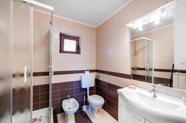 Vollständig und modern ausgestattete Apartments in einer ruhigen Gegend von Vodice, 300 Meter vom Meer entfernt. Die Anlage befindet sich 5 Gehminuten vom Blue Beach und dem Punta Hotel und 15 Minuten vom Zentrum von Vodice entfernt. Am Strand befindet sich der größte Aquapark an der Adria, bestimmt für Kinder und Erwachsene. Wir bieten qualitativ hochwertige Unterkunft in neuen, komplett ausgestatteten und modernen Apartments. Die Wohnung im Obergeschoss von 48 m2 besteht aus einem Schlafzimmer, einem Badezimmer mit Dusche, einer Küche mit Esszimmer, einem Wohnzimmer mit einem Bett, zwei Terrassen mit Meerblick, zwei LCD-TV/SAT-Receivern, Klimaanlage, kostenloses WiFi-Internet und ein Parkplatz. Die größere Wohnung im Erdgeschoss, 70 m² groß, besteht aus zwei Schlafzimmern, Badezimmer mit Dusche, Küche, Esszimmer, Wohnzimmer mit Bett, zwei großen Terrassen, drei LCD-TV/SAT-Empfängern, Klimaanlage, kostenlosem WLAN-Internetzugang und zwei Parkplätzen Räume.