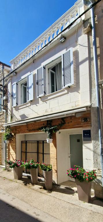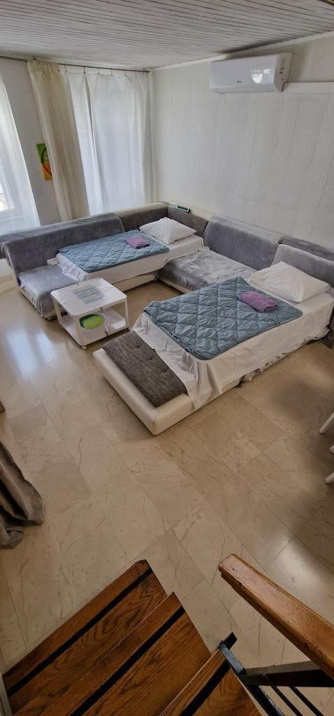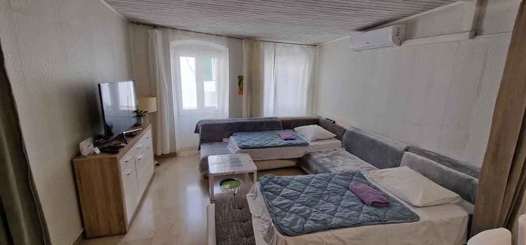 Apartments im Zentrum, 40 m von der Uferpromenade und dem Fährhafen entfernt. Es liegt direkt neben dem Strand. Das Haus erstreckt sich über zwei Etagen und ist 100 m² groß. - Studio-Apartment 45m2 für 2 Personen, Wohnzimmer, Küche, Bad/WC - Apartment 75m2, 1 Doppelzimmer mit Terrasse, Wohnzimmer für 2 Personen, Bad/WC, Küche. - Wohnung 100m2, 1 Doppelzimmer mit Terrasse, 2 Einzelzimmer, Wohnzimmer für 2 Personen, 2 Sofas mit Matratze, Küche, Badezimmer WC. Das ganze Haus ist klimatisiert und verfügt über Flachbild-Internet mit großem LCD-TV. Parkplätze sind in der Nähe.