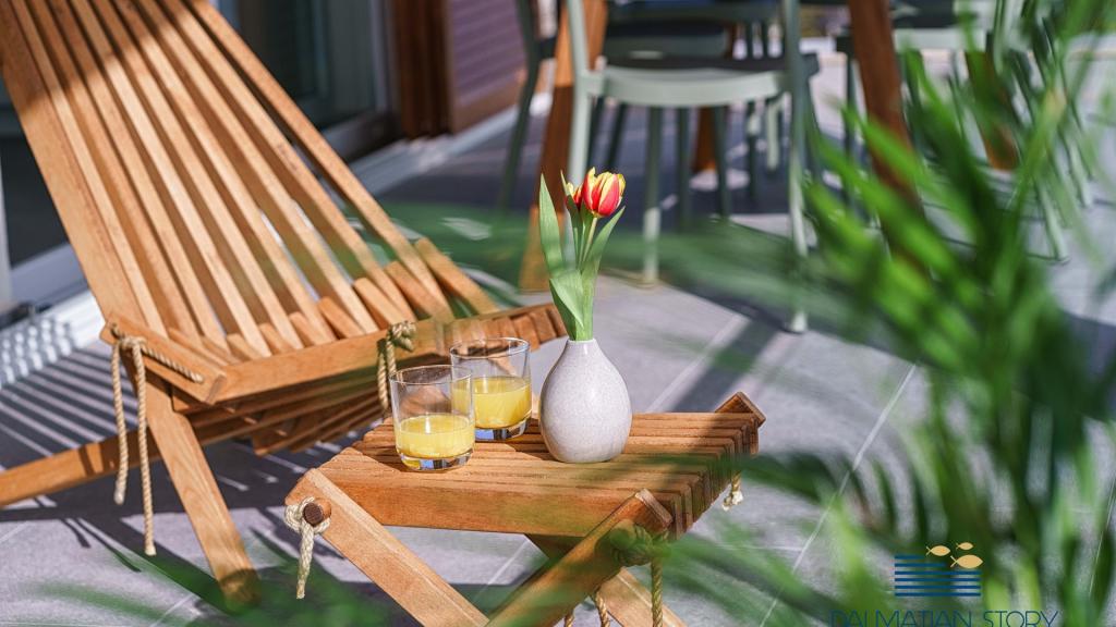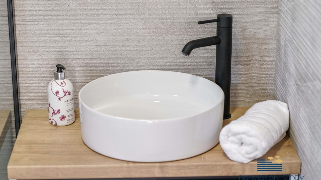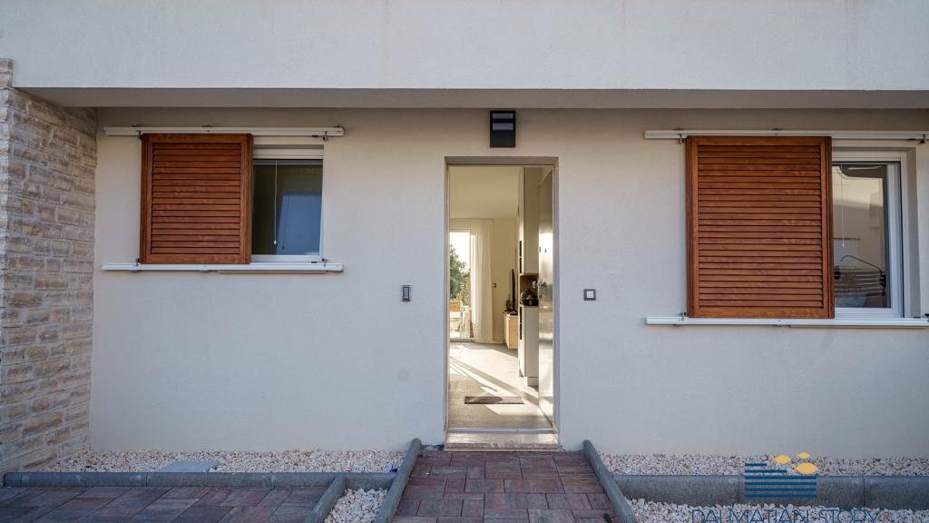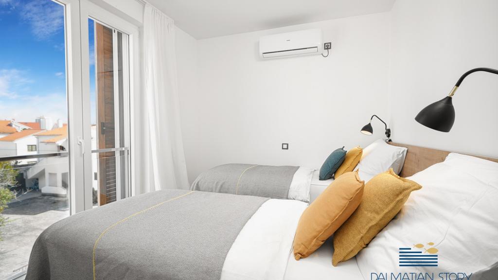 Neu renovierte und ausgestattete Apartments Maris nur 150 m vom Strand entfernt in einem ruhigen Teil von Vodice. Im Erdgeschoss befindet sich das Apartment Maris 1 mit 2 Schlafzimmern mit einer Gesamtfläche von 65m2, das Apartment besteht aus einer Küche, einem Esszimmer und einem Wohnzimmer als eine Einheit mit Zugang zu einem kleinen eingezäunten Garten und einer Terrasse mit Sitzecke, 1 Schlafzimmer mit Doppelbett und 1 Schlafzimmer mit zwei Einzelbetten und einem Badezimmer, separater Eingang und Parkplatz im Hof. Idealer Aufenthalt für 4 Personen. Auf der 2. Etage befindet sich eine Wohnung Maris 2 mit 3 Schlafzimmern und 2 Bädern von 110m2, die Wohnung besteht aus einer voll ausgestatteten und ausgestatteten Küche, einem Esszimmer und einem Wohnzimmer als eine Einheit mit Zugang zu einer überdachten Terrasse mit schöner Aussicht auf das Meer und nahe gelegenen Inseln Platz zum Sitzen und Sonne genießen, 2 Bäder und 3 Schlafzimmer, davon zwei mit Doppelbett und ein Zimmer mit zwei Einzelbetten. Die Wohnung ist klimatisiert, hat Internetzugang, Parkplatz.