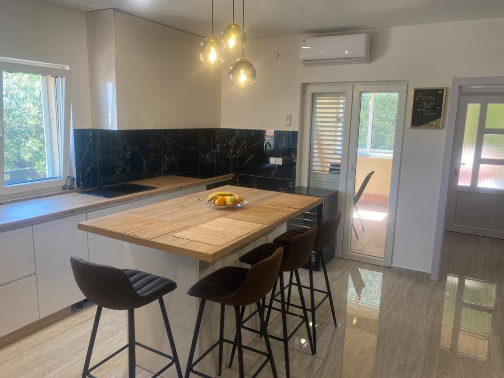 Komplett und modern ausgestattetes Apartment mit eigenem Pool (mit Wärmepumpe) in einer ruhigen Gegend von Vodice, 800 m vom Meer und dem Blauen Strand sowie 15 Gehminuten vom Zentrum von Vodice entfernt. Am Strand befindet sich der größte Aquapark an der Adria, der für Kinder und Erwachsene gedacht ist. Wir bieten hochwertige Unterkunft in einem neuen, komplett ausgestatteten und dekorierten Apartment, bestehend aus zwei Schlafzimmern, einem Badezimmer mit Duschkabine, einer zusätzlichen Toilette, einer Küche mit Esszimmer und einem großen Wohnzimmer mit einer Garnitur, die in ein Bett für zwei Personen umgewandelt werden kann Personen, eine Terrasse, ein zur Wohnung gehörender angelegter Garten mit mediterranen Pflanzen, LCD-TV/SAT-Receiver, Klimaanlage, kostenfreies WLAN, 4 Parkplätze. Die Wohnung befindet sich im Erdgeschoss des Gebäudes und ist daher für Menschen mit Behinderungen geeignet. Wenn Sie auf der Suche nach einer komfortablen Unterkunft und einer ruhigen Nachtruhe sind und gleichzeitig das reiche Kultur- und Nachtleben von Vodice, Tribunj und Šibenik genießen möchten, buchen Sie eine Unterkunft in unserem Apartment. Wir freuen uns auf Ihr Kommen.