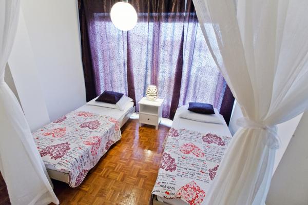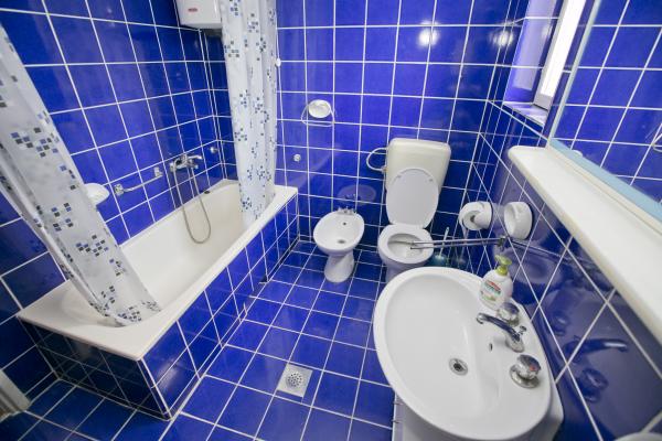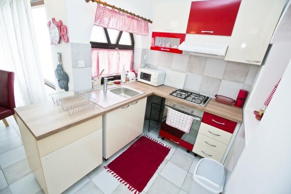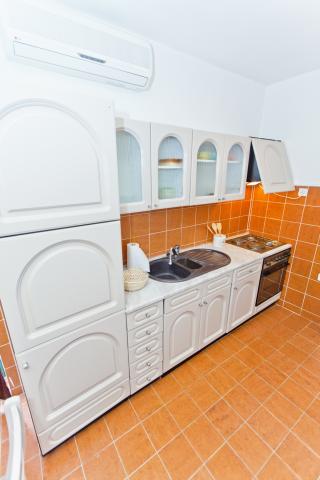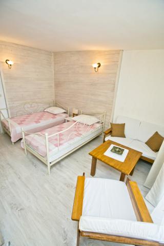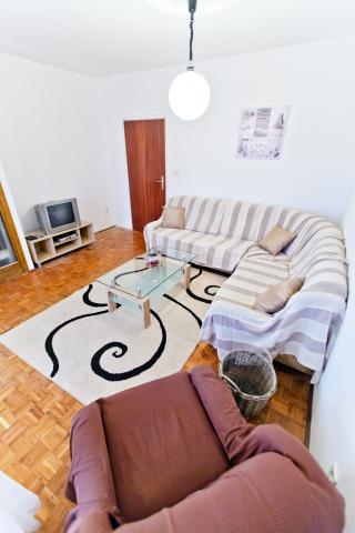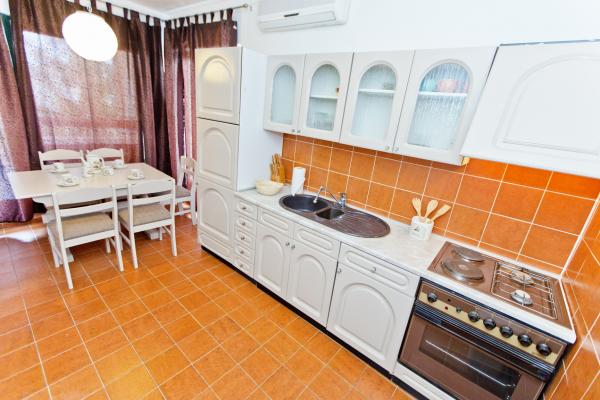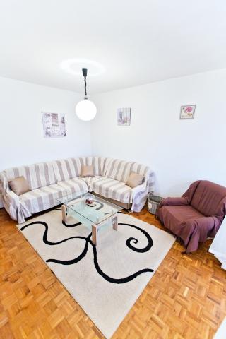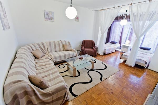 Voll ausgestattete Wohnung mit einem Schlafzimmer mit einem Doppelbett und einem Wohnzimmer enthält visuell separaten Bereich mit zwei zusätzlichen Betten. Die Wohnung verfügt über ein Badezimmer, eine Küche mit Esszimmer und Terrasse. Parkplatz ist verfügbar. Die Gäste können auch den Grill benutzen.
