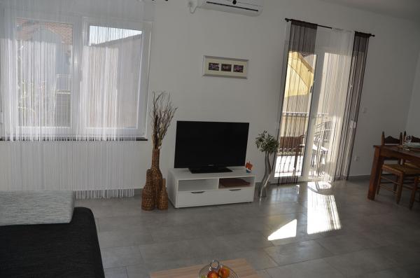 Moderne Wohnung nach dem europäischen Standard der Nähe des Zentrums von Srima und nur 200 Meter vom Strand entfernt. Jede Wohnung verfügt über einen privaten Parkplatz. Die Zimmer werden Sie schlafen auf dem Boxspring-Bett. Im Wohnzimmer gibt es ein zusätzliches Bett, die zwei Kinder schlafen können. Die Apartments sind mit Klimaanlage und Satelliten und 40LED-TV ausgestattet. An allen Fenstern des moskito-Netzwerk.