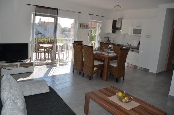 Wir waren mit unseren zwei Kids (2, und 4,5) und den Großeltern in der Villa Marina in dem großen Apartment für 8 Tage zu Gast. Es war von der ersten bis zur letzten Std. alles bestens. Nicht nur das wir liebe Gastgeber hatten, welche unten wohnen und für jegliche Fragen und Belange immer ein offenes Ohr haben. Das Apartment ist mit allem was man für einen selbst versorgenden Urlaub braucht bestens Ausgestattet. Es ist super sauber und wir hatten einen riesigen Balkon. Selbst Wäsche kann man bei Bedarf im eigenen Badezimmer waschen. Die Betten sind absolut neuwertig und laden zum erholsamen Schlaf ein. Für den der im Urlaub deutsches Umfangreiches TV-Programm wünscht ist auch alles geboten. Wlan umsonst ist auch praktisch, vor allem um die nächsten Ausflüge gut planen zu können. Alle Fenster sind mit Mückenrollo\'s ausgestattet, sodass auch keine Plagegeister die nächtliche Ruhe stören. Der Garten ist auch nett angelegt und lädt zum verweilen ein. Der Strand ist in ca. 3-4 Gehminuten prima zu erreichen und mehr als zu empfehlen. es ist ein Kiesstrand, wie fast immer in Kroatien, welcher aber ab ca. 1m im Wasser dann in Sand über geht. Badeschuhe somit nicht zwingend notwendig, macht es am Strand allerdings, gerade für die Kids wesentlich angenehmer. Das Wasser ist sehr sauber. Ebenso der Strand. Man kann sich auch Liegen ausleihen inkl. Sonnenschirmen. Die Verleiher sind gleichzeitig ein nettes Restaurant, welches eine wirklich ausgezeichnete Küche bietet. und selbst am Strand prima bedient. sodass man ganz in Ruhe sein Essen auch dort genießen könnte. in der Näheren Umgebung gibt es viele nette Orte und Städte zu erkunden. in direkter Nachbarschaft liegt Vodice. welches eine wunderschöne Strandpromenade mit zahlreichen Shops und Restaurants und einem Hafen aufwarten kann. Vor allem Abends ist hier gut was los und man hört häufig auch live Musik und auch die Fischer schmeißen den Grill an um Ihren frisch gefangen Fisch an den Mann und die Frau zu bringen. Rundum gelungen und bald wieder, dessen sind wir uns sicher!