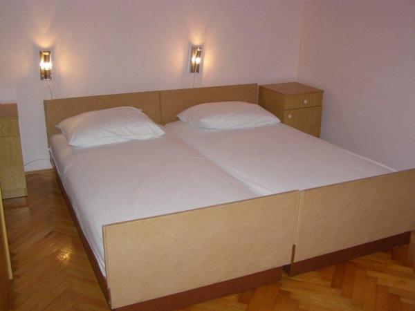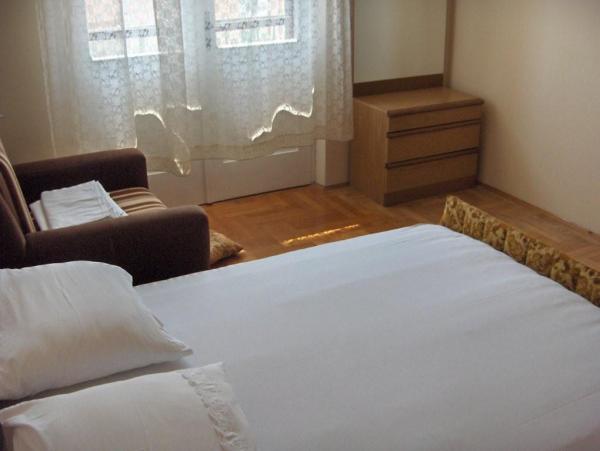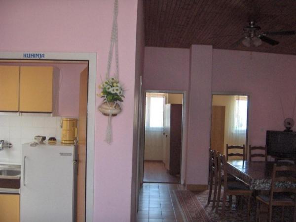 Große Wohnung mit vier Schlafzimmern, einer Küche, zwei Badezimmer und einen großen Speisesaal, 110m2 groß und drei Zimmer mit Bad, schön eingerichtet, angenehme Atmosphäre im Zentrum eines der beliebtesten touristischen Destinationen an der Adria-Küste. Wir sind sehr pro Fuß 3 Minuten schließen aus, blaue Strände, Strände mit blauer Flagge als Zeichen eines extrem klaren Gewässern und Symbole attraktiven Strand und das Zentrum, aber dennoch in einer ruhigen, angenehmen und erholsamen Urlaub. Im Inneren der Anlage für alle Gäste ist ein Parkplatz im Hof sind ugodnan Sitzecke und Grill. Alles ist auf Ruhe und verbringen Sie nett.