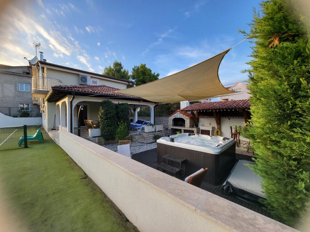 Das ganze Haus nur für Sie! Ein Paradies für Familien! Willkommen in der Villa Melosa! Komfortables Ferienhaus in Vodice mit privatem Tennisplatz. Das Haus bietet Platz für bis zu 10 Gäste. Es verfügt über 5 Schlafzimmer, 3 Badezimmer, eine Küche, ein Wohnzimmer und eine geräumige Terrasse, auf der Sie sich entspannen und Grillabende sowie einen Außen-Whirlpool für 5 Personen genießen können. Das Haus ist klimatisiert. Zum Objekt gehören 3 PKW-Stellplätze, davon zwei mit überdachtem Garagenplatz. Das gesamte Grundstück ist eingezäunt, so dass Sie sicher sein können, dass Ihre Kinder nicht auf die Straße laufen und unbeschwert im großzügigen Hof spielen können.