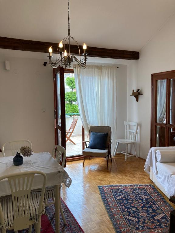 In der Wohnung wird jeder Gast mit einem Begrüßungsgetränk, einer hausgemachten, autochthonen Süßigkeit oder einer anderen Spezialität zur Erfrischung nach der Rückkehr von der Reise begrüßt. Dem Gast steht eine voll ausgestattete Küche zur Verfügung, damit er sich wie zu Hause fühlen kann (Kühlschrank mit Gefrierfach, Gefrierfach, Mikrowelle und Umluftofen, Induktionsplatte mit 4 Feldern, Mixer, Toaster, Wasserkocher, TV, 120 TV-Programme, WLAN Fi, Bialetti-Mokka, Kuchenmixer, Sitzmöbel auf dem Balkon von 12 m2, Moskitonetze, Waschmaschine, Waschmittel, Bade- und Shampoo für die erste Hand, Toilettenpapier, Bettwäsche und Handtücher, Tischdecken, Küchentücher, Parkplatz im Hof des Hauses unter mit einem Schlüssel, ein Abstellraum zur Aufbewahrung von Gepäck und Lebensmitteln, sowie die Möglichkeit, reife Feigen zu genießen für diejenigen, die nach dem 1.8. kommen.Die Gastgeberin hat als Zeichen der Aufmerksamkeit für ihre Gäste persönlich zwei Bademäntel genäht diese ist im Übernachtungspreis enthalten.