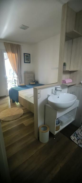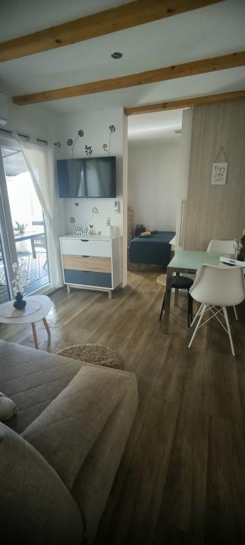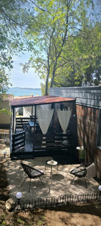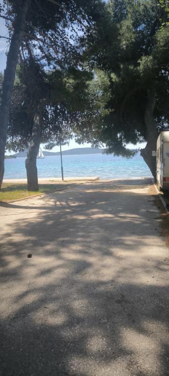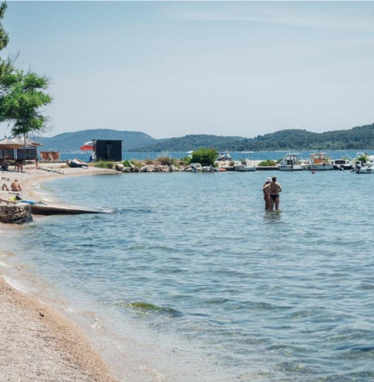Das Mobilheim befindet sich in einem wunderschönen Teil von Vodice, im Lager des Imperial Hotels, 20 Schritte vom Meer und dem Strand entfernt, der sich bis ins Zentrum erstreckt. 20 Stufen zum ersten Restaurant oberhalb des Hauses im Hotel und Schwimmbad. Alle Einrichtungen des Hotels stehen zur Verfügung, Außenpool, Innenpool, Restaurants, Fitnessstudio... Sie können direkt unter dem Haus schwimmen, am Strand Kaffee trinken, im Pool schwimmen, etwas Leckeres essen, alles im Umkreis von 50 Metern. Es stehen 2 Schlafzimmer mit jeweils eigenem Bad, Wohnzimmer mit Küche und Terrasse zur Verfügung. Der Parkplatz ist kostenfrei und befindet sich direkt vor dem Haus. Das Zentrum von Vodice, Apotheken, Märkte... 3 Minuten mit dem Auto, 15 Minuten zu Fuß. In der Nähe einer Bäckerei, eines Ladens... Den Gästen stehen eine Bäckerei und ein Außengrill, kostenfreies WLAN und Bettwäsche zur Verfügung.