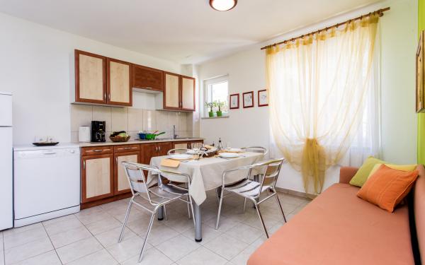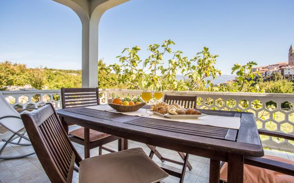 Kurtaxe ist im Preis inbegriffen.Wir, mein Mann, zwei Kinder und ich haben eine sehr schöne Zeit in Vrbnik verbringen dürfen. Es war unser erster Aufenthalt in Kroatien und der gesamten Familie hat es gefallen. Saubere und schöne Gegend, glasklares Wasser, super Wetter. Wir haben das Apartment sauber vorgefunden. Bei unserer verspäteten Ankunft sind wir sehr nett von der Eigentümerin empfangen worden. Wir haben unsere Unterkunft genauso vorgefunden wie im Internet beschrieben. Das Apartment ist modern eingerichtet und gut ausgestattet. Das Haus selber ist ziemlich neu und gepflegt. Man hatte eine super Aussicht über den Ort und auf das Meer. Für die gute Aussicht hat man den kleinen Berg, den man immer rauf und runter musste, gerne in Kauf genommen. Die Klimaanlage war im Juli / August "gold" wert. Wenn wir zu Hause waren, haben wir uns nur auf dem Balkon aufgehalten. Groß genug für 4 Personen. Die Lage der Wohnung war ebenfalls super. Noch keine 10 min zu Fuss an die erste Badebucht und zum Bäcker war es auch nicht viel weiter. Der Ort, der zum Glück noch nicht so überlaufen ist, hat uns sehr gut gefallen. Die kleinen Badebuchten waren trotz der Hauptsaison ruihig, im Gegensatz zu dem Badeort Baska - dort hat es uns nicht so gut gefallen, da der Ort zumindest in der Hauptsaison viel zu überlaufen war. Vrbnik ist klein, idyllisch und urgemütlich. Es gibt dort lecker Wein, gutes Essen und nette Menschen. Insgesamt hat uns die Insel Krk sehr gut gefallen ! Wir werden bestimmt nochmal wieder kommen. Danke nochmal Dora und Ivana und Grüße aus Deutschland !!