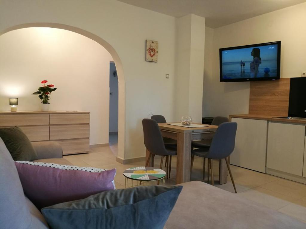 Das Apartment Branko verfügt über eine Terrasse und befindet sich in Žaborić in der Gespanschaft Šibenik - Knin. Sie verfügen über eine Klimaanlage und kostenfreies WLAN. Die Unterkunft verfügt über 2 Schlafzimmer, ein Wohnzimmer mit einem Flachbild-TV, eine voll ausgestattete Küche und ein Bad mit einer Dusche und kostenlosem Zugang zu Kosmetikartikeln. Nutzen Sie die Grillmöglichkeiten und entspannen Sie im Garten. Trogir liegt 44 km von den Branko Apartments entfernt und Šibenik erreichen Sie nach 11 km. Vom Flughafen Split trennen Sie 43 km. Sprechen wir über Ihre Sprache!