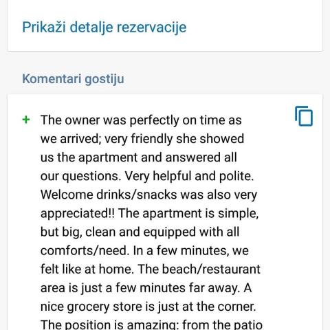 Apartment kann man nur empfehlen. Die Unterbringung erfolgt in einer ruhigen Umgebung, sind freundlich zu Hause. Das Meer war sauber und warm. Nun, erleichtert uns die ganze Familie. Ďakujeme