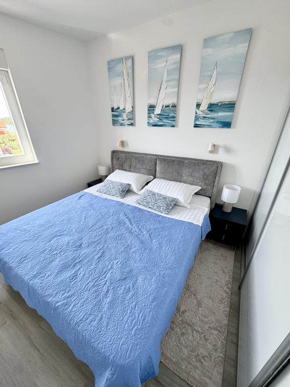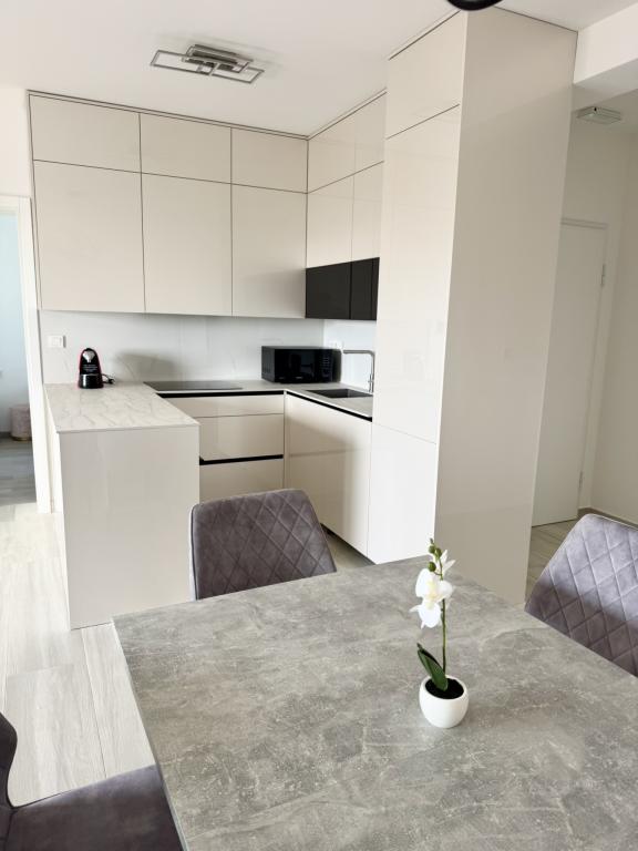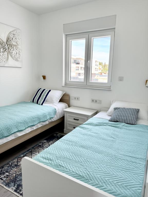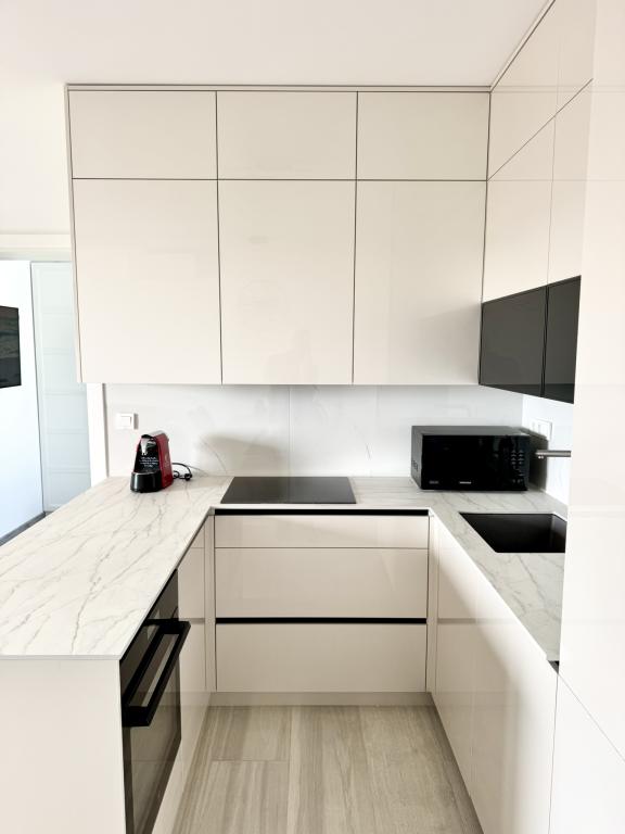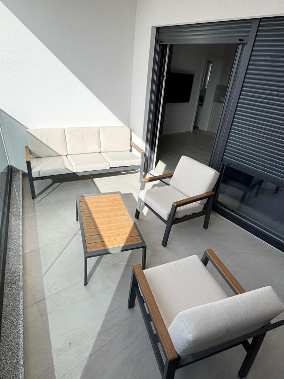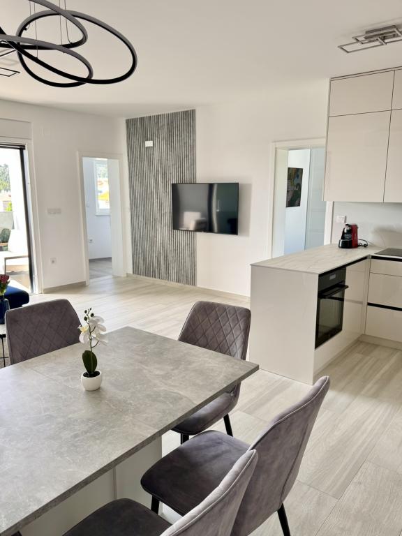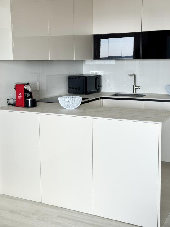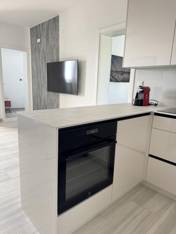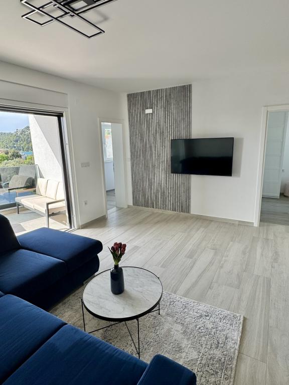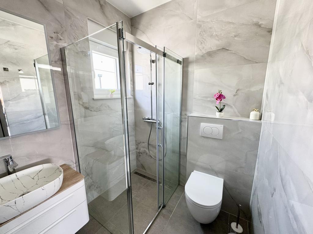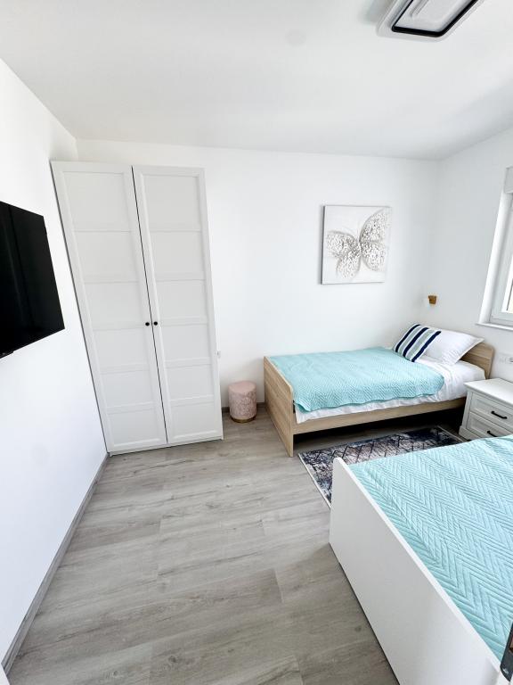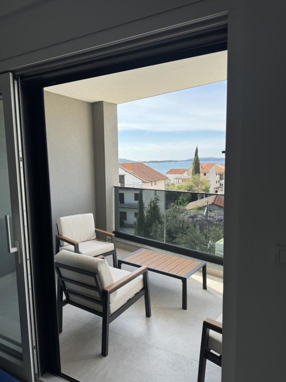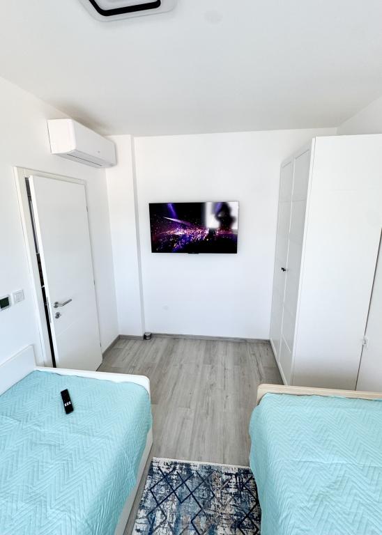 Neues, modernes Apartment, 73 m², zwei Schlafzimmer, zwei Badezimmer, alle Zimmer mit Klimaanlage und TV. Das einzige Apartment im zweiten Stock mit Meerblick.