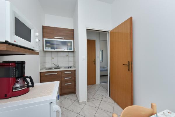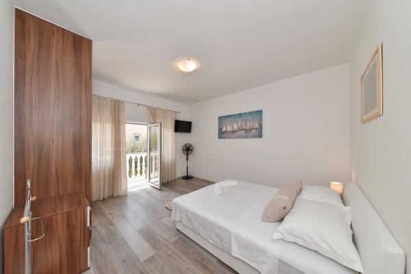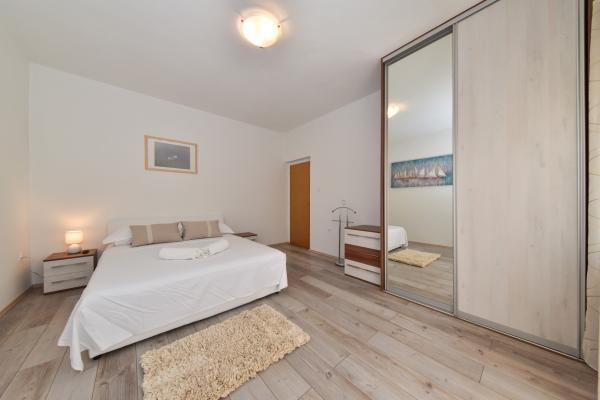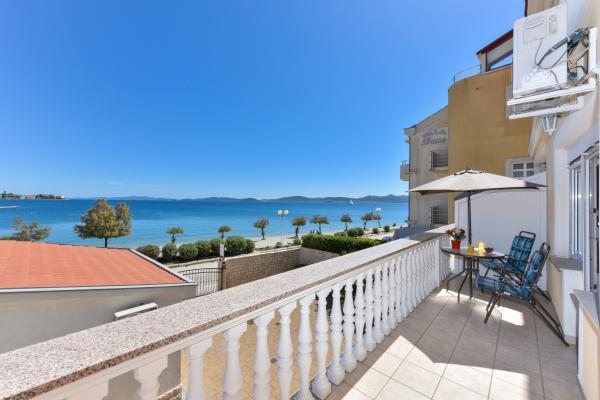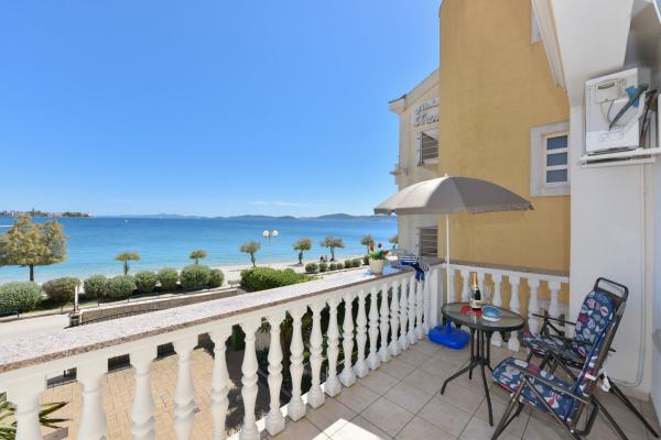 In Puntamika, einem Stadtteil von Zadar, direkt am Meer und Strand liegen zwei Ferienwohnungen in einem Familienhaus. Puntamika ist ein Stadtteil von Zadar, das sich im ruhigen Teil der Stadt direkt am Meer und Strand befindet, und ist daher ideal für einen ruhigen und entspannten Urlaub. Die Wohnungen befinden sich auf dem ersten Stock eines Familienhauses, und die Oberfläche jeder Wohnung ist 30 m2 eine Terrasse 5 m2. Die beiden Wohnungen haben einen wunderschönen Blick aufs Stadtzentrum, die Halbinsel, das Meer und die Insel Ugljan. Am Strand befindet sich auch die Promenade mit verschiedenen Angeboten: Laden, Restaurant, Cafés, Apotheke, Bank und Bushaltestelle. Parken kann man im eingeschlossenen Raum vor dem Haus. Jede Ferienwohnung ist für 2 Personen geeignet. Haustiere sind nicht erlaubt.