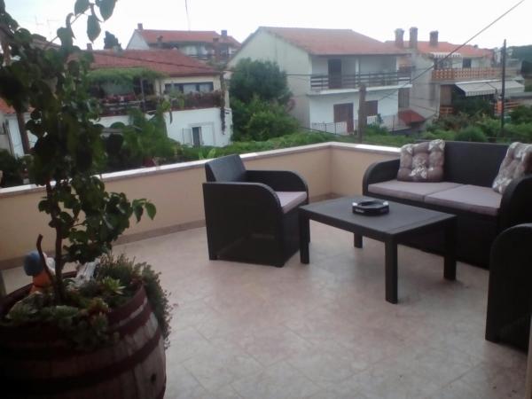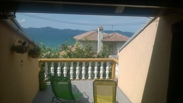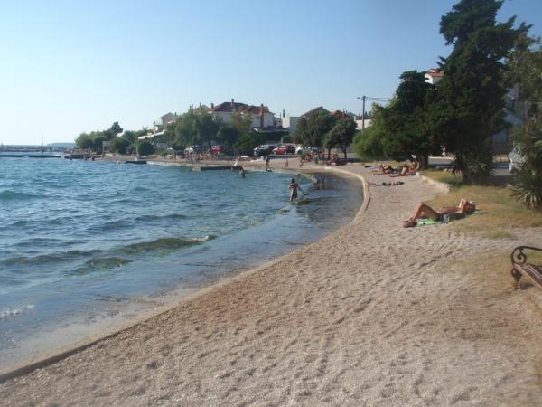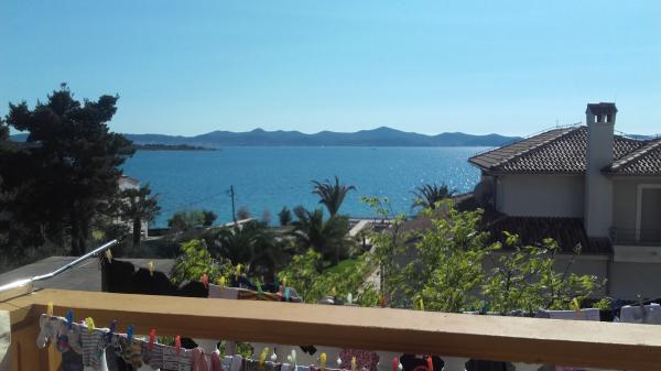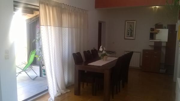 Die Wohnung befindet sich im Dachgeschoss des Hauses, 125 m2, ca. 50 m vom Meer entfernt. Es hat drei Schlafzimmer, Badezimmer, großes Wohnzimmer mit Kamin, Klimaanlage, voll ausgestattete Küche und zwei große Balkone. Bei Bedarf gibt es auch Kinderbett und Hochstuhl für ein Kind. Parkplatz für das Auto im Hof vor den Wohnungen, Haustiere sind willkommen.