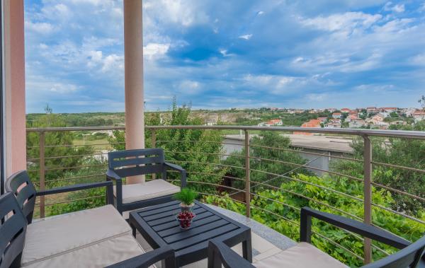 Die Wohnung befindet sich in Zadar in einem privaten Familienhaus und hat 90m2 und eine große Terrasse mit Blick auf das Meer und die Inseln. Inklusive kostenlose Parkplätze und kostenfreie Grillmöglichkeiten und ein separater Eingang. Das Apartment ist mit Klimaanlage, kostenfreiem WLAN, zwei Schlafzimmern, 3 TVs, einer voll ausgestatteten Küche, einem WC und einem großen Wohnzimmer ausgestattet. Ein Schlafzimmer hat ein Doppelbett und das andere hat zwei Einzelbetten. Die Wohnung befindet sich in einer ruhigen, ruhigen Straße, geeignet für Ferien und Kinder. Der Strand ist 5 Minuten mit dem Auto entfernt. Die Altstadt ist ebenfalls eine 5-minütige Autofahrt entfernt. Das große Einkaufszentrum erreichen Sie nach einem 10-minütigen Spaziergang oder 1 Minute mit dem Auto.