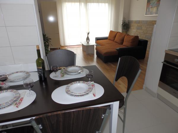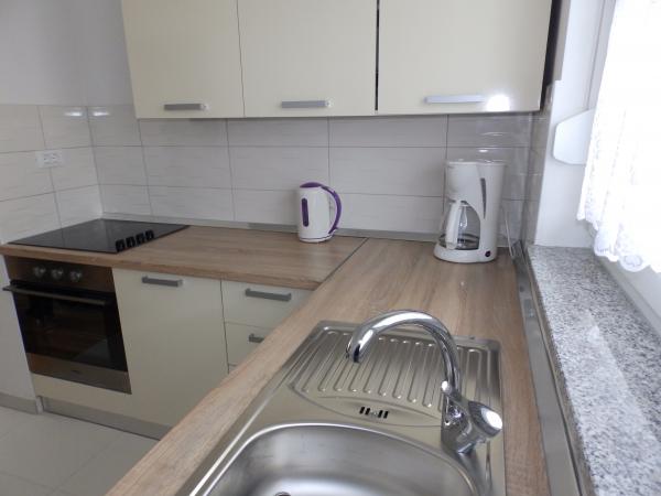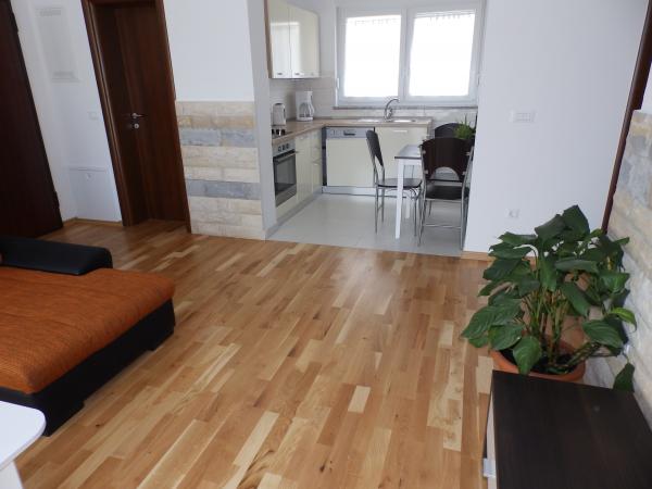 Apartment Nagoya ist im Erdgeschoss des neuen Gebäudes von 6 Wohnungen. New vollständig in einer ruhigen Gegend ideal für Urlaub ausgestattete Wohnung. Es besteht aus zwei Schlafzimmern, Küche, Wohnzimmer, Bad und WC. Es hat auch einen großen Garten von 90m2 mit Kamin, ideal für Familienurlaub. Die Wohnung verfügt über einen Parkplatz. WLAN ist kostenlos.