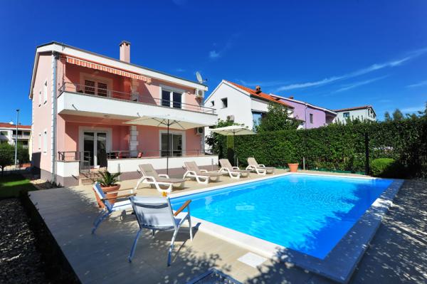 Wenn Sie einen unvergesslichen Urlaub verbringen möchten, dann ist Zadar als inhaltliches und wohnliches Reiseziel in der Villa ViGo die richtige Wahl. Die Villa befindet sich am Stadtrand, weit genug vom Lärm der Stadt entfernt und dennoch nah genug an allen Annehmlichkeiten. Das geräumige Luxusapartment im Erdgeschoss einer Villa (93 m²) mit einem überdachten Balkon und einer von Grün umgebenen Terrasse bietet Ihnen die vollständige Intimität des Badens, Sonnenbadens und der allgemeinen Nutzung des gesamten Gartens. Auf der Etage befinden sich zwei Eigentümer, die Ihnen gerne zur Verfügung stehen, wenn und wann Sie möchten, und die auch bereit sind, Villu auf Ihre Anfrage zu verlassen, die zum Zeitpunkt der Buchung anzugeben ist. Das Apartment besteht aus zwei Schlafzimmern mit einem Doppelbett (eines hat eine geschlossene Lodge), einer voll ausgestatteten Küche mit einem Essbereich und einem geräumigen Wohnzimmer mit einer Terrasse mit Blick auf den Pool. Das Eckeckenset kann als Einzelbett oder als Streckbett für zwei Personen genutzt werden. Die Küche ist mit allen notwendigen Hilfsmitteln ausgestattet; Geschirrspüler, Mikrowelle, Kaffeemaschine, Wasserkocher, Mixer, Toaster sowie Geschirrspüler. Das Badezimmer ist mit einer Badewanne, einer Waschmaschine und einem Wäschetrockner sowie hygienischen Notwendigkeiten ausgestattet. Gäste sind ohne Aufpreis verfügbar; 2 Parkplätze, WLAN, Flachbild-Sat-TV, Klimaanlage, Grill, Fitnessgeräte, Tischtennis. Villa ViGo bietet volles Vergnügen, kommen und sehen.