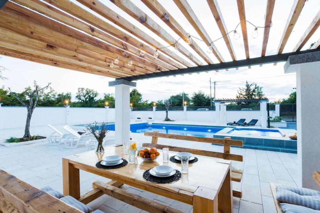 Die Villa Olana befindet sich in einem ruhigen Teil von Zadar. und bietet kostenfreies WLAN, klimatisierte Unterkünfte, eine Gemeinschaftslounge und einen Garten mit Außenpool.Die Unterkunft umfasst auch kostenfreie Privatparkplätze und eine Gemeinschaftsküche und einen Grill.Die Villa verfügt über 5 Schlafzimmer (10 Personen), 4 Badezimmer, Bettwäsche , Handtücher, Flachbild-TV, ein Esszimmer, eine voll ausgestattete Küche und eine Terrasse mit Blick auf den Pool. Gäste der Villa können auf der Terrasse entspannen. Die Villa Olana liegt 3,8 km vom Providur-Palast und 4,3 km vom Nationalmuseum in Zadar entfernt. Der nächste Flughafen, der Flughafen Zadar, liegt 10 km von der Unterkunft entfernt