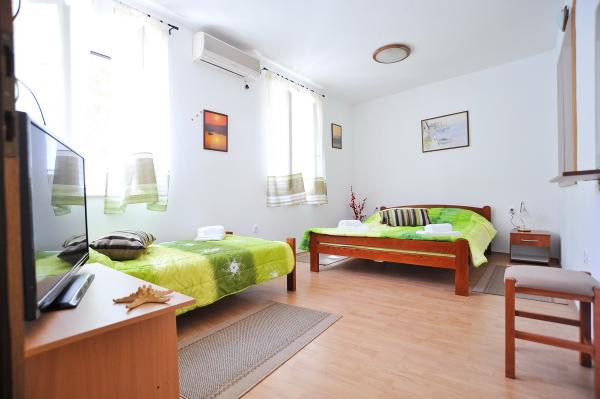 Das sind schöne Zimmer und eine Wohnung im Zentrum von Zadar. Wenn Sie durch völlige Stille und Frieden regiert werden, immer schön, wenn Sie etwas Schlaf zu bekommen und dort den wahren Geist der Stadt fühlen spähen. Sie sind buchstäblich im ersten Haus, als er in die Altstadt gegangen, auf der rechten Seite. Das Haus ist ein Teil der Geschichte der Stadt Zadar, einem schönen Stein. Wir haben Platz für 4 Personen, verfügt über ein großes Doppelbett und ein Sofa in einem schönen Saal, wo man frühstücken kann. Es verfügt über Wi-Fi, Kühlschrank, Wasserkocher, Geschirr, Sat-TV und natürlich klimatisiert. Die andere Seite des Hauses verfügt über drei Schlafzimmer und eine Küche, die wir zusammen mieten, weil sie ein Badezimmer teilen, stellen Sie alle, dass ein Teil von 7 Personen zu empfangen. Ein Zimmer hat drei Betten und die anderen beiden sind in einem romantischen Loft mit Dachfenster befindet, und beide sind doppelt. Sie haben auch eine voll ausgestattete Halle wie die vorherigen Raum. Alles ist weit aus dem Zimmer nur 5 min zu Fuß. Alle Museen, Antiquitätenläden, Apotheken und öffentliche Parkplätze direkt neben dem Zimmer. Willkommen.