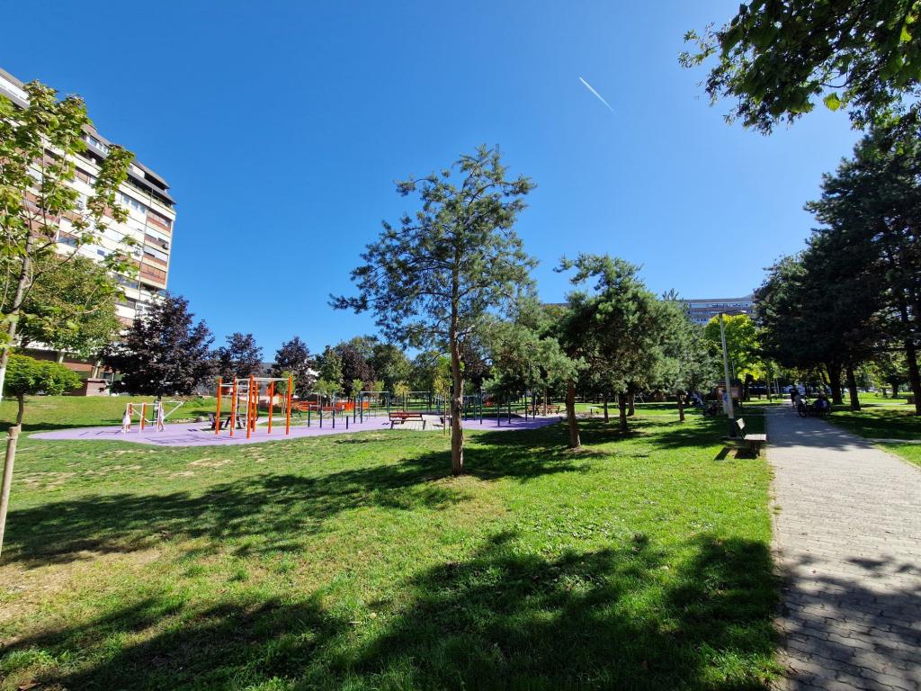 Genießen Sie mit Ihrer Familie diese moderne, komplett und neu renovierte Unterkunft in einer hellen und komfortablen Wohnung, deren Lage zahlreiche Vorteile bietet. 10 Minuten von allen Zielen Zagrebs, dem Hauptplatz, Parks, Kongresszentrum, Konzertsälen entfernt. Viel Grün und Parks, ausgezeichnete öffentliche Verkehrsmittel, 15 Minuten vom Flughafen entfernt, aus allen Richtungen gut zu erreichen. Die Wohnung befindet sich in einem Gebäude in einer ruhigen, familienfreundlichen Nachbarschaft mit einer Schule und Parks, einem See, einem Museum, vielen Restaurants und Cafés, großen Geschäften und Einkaufszentren. Zwischen der Siedlung und dem Stadtzentrum, das mit dem Auto oder den öffentlichen Verkehrsmitteln in 10 Minuten zu erreichen ist, besteht eine gute Verkehrsanbindung. Sehr sichere Nachbarschaft voller Kinder und Jugendlicher. Der Parkplatz vor dem Gebäude ist gebührenpflichtig, und in unmittelbarer Nähe (auf der anderen Straßenseite) gibt es einen Parkplatz, der den ganzen Tag weniger als 1 Euro kostet.