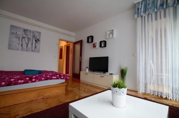 Kurtaxe ist im Preis inbegriffen.Die Umgebung Wohnung ist 43 m2. Die Wohnung besteht aus Vorraum, Wohnzimmer, Küche, Esszimmer, Bad mit Wanne und WC, zusätzliche kleine Räume für Raucher vorgesehen. Studio-Apartment kann vier Personen beherbergen. Wohnung verfügt über eine große Terrasse, die einen entspannenden Blick auf die Landschaft bietet umliegenden Wiesen und Wälder. Die Wohnung ist klimatisiert und ausgestattet mit Zentralheizung ausgestattet. Der Raum hat eine Doppelbett Größe 180 x 200 cm und Cabrio Bett für zwei Personen. Bei Bedarf können die Gäste ein Klappbett für Kinder verwenden.