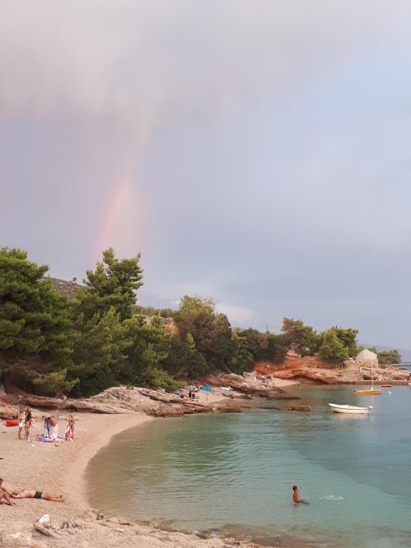 Das Haus besteht aus einer Zweizimmerwohnung A4 (4+0) und einer Studiowohnung A2 (2+1) im Erdgeschoss. Das Haus ist neu in einem Pinienwald in der Nähe eines schönen Kiesstrandes, 60 m vom Strand entfernt. Apartment A4, ID51294 besteht aus zwei Schlafzimmern, 2+2 Betten (Doppelbetten), ggf. einem weiteren Bett. Das Apartment A4 (4+0) befindet sich im Erdgeschoss und verfügt über eine Küche, ein Badezimmer und eine überdachte Terrasse zum Essen und Sitzen sowie eine weitere Terrasse zum Sonnenbaden und für Kinder. Die Größe der Wohnung beträgt ca. 50 m2, Terrassen 15 m2 und 25 m2. Wir bieten Ihnen auch ein neues Studio-Apartment A2 (2+1) ID 51296, Größe 40 m2 mit Terrasse. SAT-TV und Klimaanlage, Internet verfügbar und Garage für ein Auto. Die Wohnung dazwischen vermietet meine Familie im Sommer.