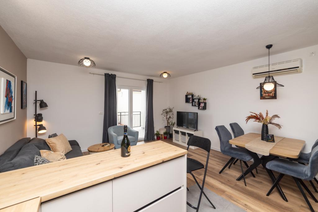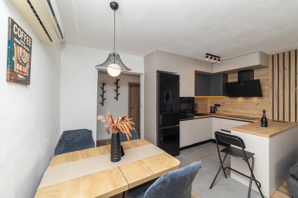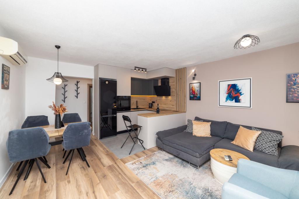 Wir wohnten in einer 2+2-Wohnung, getrennte Zimmer, Kochnische. Überall sauber und Ausstattung in gutem Zustand, keine alten Möbel usw. Der Preis ist meiner Meinung nach gut, ohne zusätzliche Gebühren für Klimaanlage, Hund usw.... Nachtleben nur am Strand, völlige Ruhe rund um die Wohnung, wir waren überrascht. Wir haben die Eigentümer nicht oft gesehen, nur die Übergabe am Anfang und dann am Ende, wir sind viel herumgefahren und haben es genossen. Kiesstrände haben den Vorteil, dass das Meer wirklich kristallklar ist. Sollte ich jemals wieder in der Gegend sein, weiß ich, wohin ich gehen muss, und ich glaube nicht, dass ich woanders suchen würde, wenn es verfügbar wäre. Da es Perfektion nicht gibt, möchte ich noch eine kleine Anmerkung machen. Die Pfanne auf dem Induktionsherd ließ sich etwas schwer erhitzen, wahrscheinlich ist sie nicht direkt für die Induktion gebaut, aber da ließe sich etwas machen, es hat nur ein wenig gedauert, das restliche Geschirr war in Ordnung.