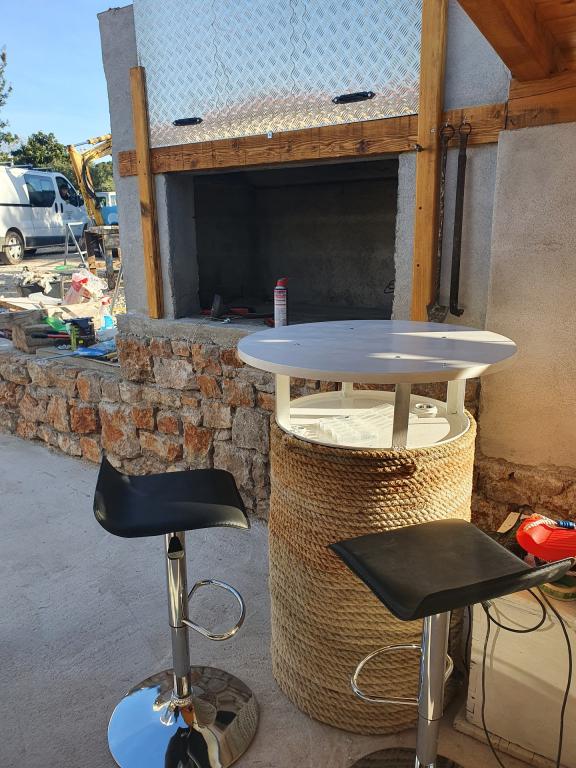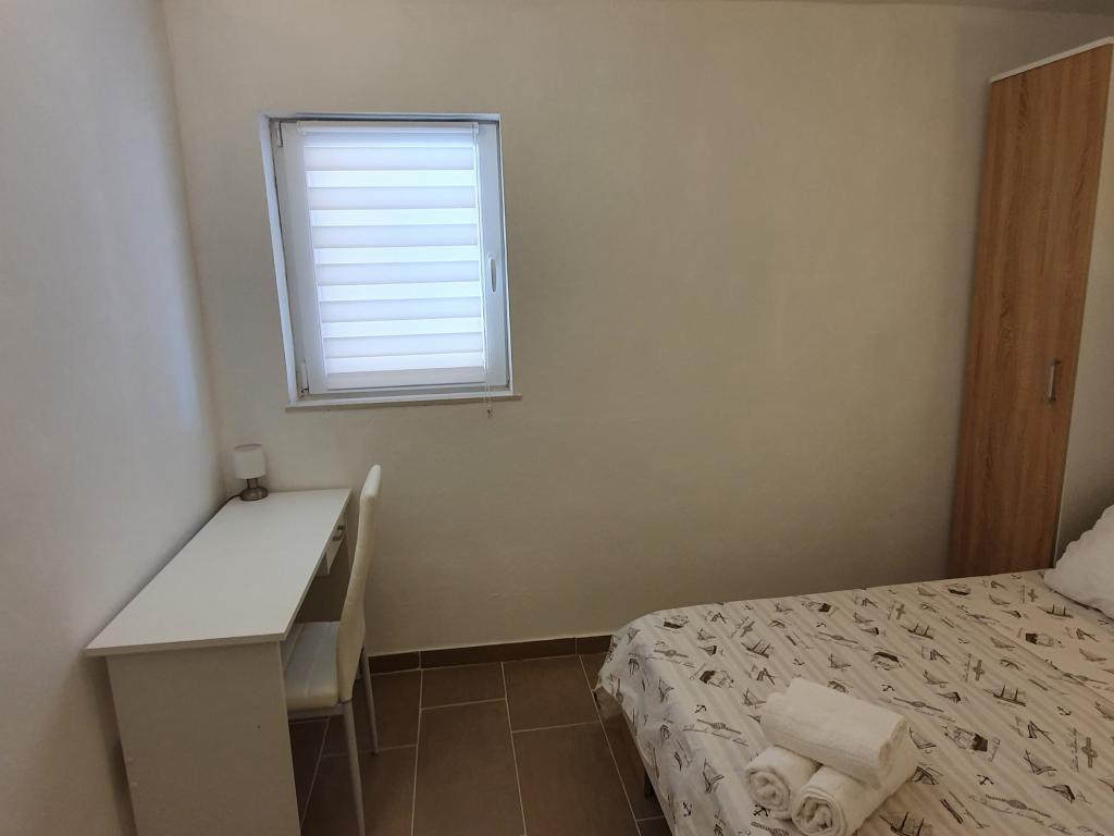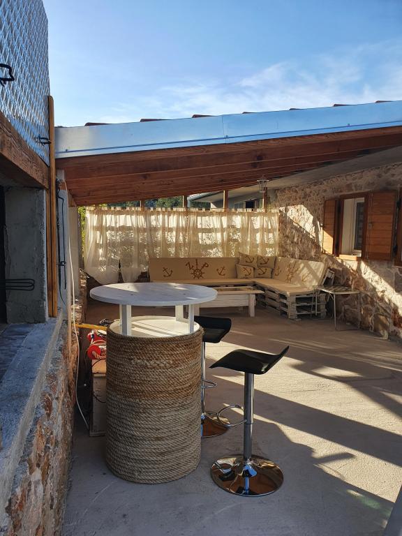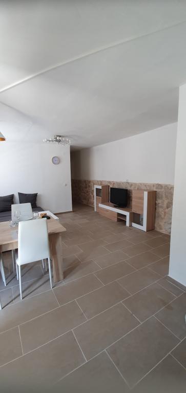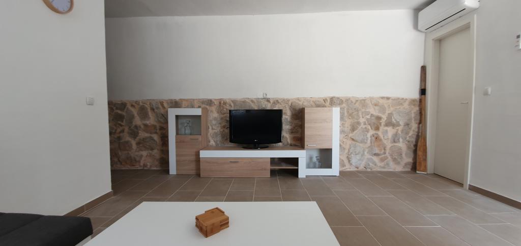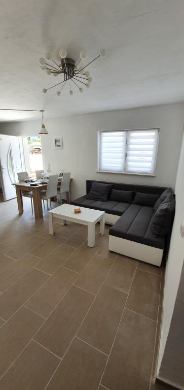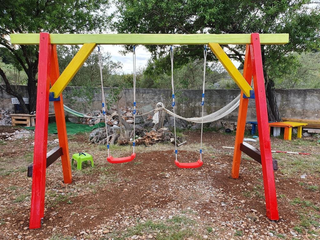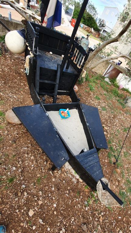Neues Fischerferienhaus auf der Insel Murter. Das Haus liegt nur wenige Gehminuten vom Strand Pod Vrške und Luka entfernt. Slanica Strand ist 10 min. Geh vom Haus weg. Das Haus besteht aus zwei Schlafzimmern. Ein Doppelzimmer mit einem Bett 160 x 200 und ein kleineres Zimmer mit einem Bett 80 x 200, das für zwei Erwachsene oder zwei Kinder auf 160 x 200 erweitert werden kann. Zwei Badezimmer, eines mit Waschbecken, Toilette und Waschmaschine. Das andere Badezimmer mit Toilette, Waschbecken und großer Dusche 90 x 120. Wohnzimmer mit Ecksofa. Esszimmer mit Tisch für 4 Personen (bei Bedarf haben wir auch einen Stuhl für ein kleines Kind). Die Küche ist mit einem Kochfeld, einem Backofen, einem Wasserkocher, einer Kaffeemaschine und Dolche Gusto ausgestattet. Privatparkplatz vor der Wohnung mit behindertengerechtem Zugang. Auf der 60 m2 großen Terrasse befindet sich ein Grill. Neben den Häusern befindet sich ein privater Kinderspielplatz mit einem Trampolin, einem Piratenschiff mit Sand, einer Kinderküche, Schaukeln, einem Kletterseil, Hängematten und einem Basketballkorb.