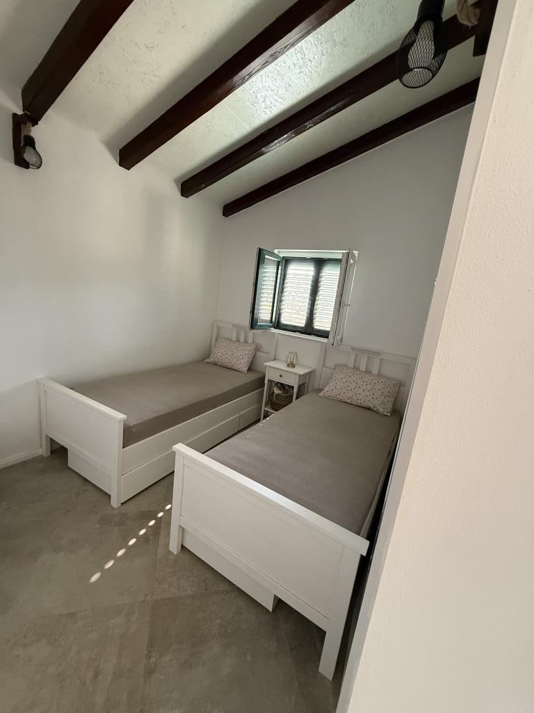 Das frisch renovierte Ferienhaus „Kula“ liegt in einer Oase der Ruhe in der Bucht von Bizikovica auf der Insel Žut. Das Haus befindet sich in ruhiger Lage, nur 20 Meter vom Meer und der Uferpromenade entfernt. Die Terrasse bietet einen wunderschönen Meerblick und ist ideal zum Entspannen. Das Haus verfügt über zwei Schlafzimmer, ein Badezimmer mit Dusche, eine voll ausgestattete Küche und eine große Terrasse. Das fließende Wasser stammt aus Regenwasser und ist nicht zum Trinken geeignet; es wird ausschließlich zum Duschen und Waschen verwendet. Gehen Sie sparsam mit Wasser um, denn auf der Insel ist Wasser kostbar. Der Strom wird über Solarpaneele (12 V) erzeugt. Erstklassige Restaurants, der Yachthafen ACI und ein Supermarkt befinden sich in der benachbarten Bucht, die über einen markierten Fußweg über einen Hügel in etwa 20 Minuten zu Fuß erreichbar ist. Lebensmittel und Trinkwasser sollten Sie am besten im Abfahrtshafen kaufen.