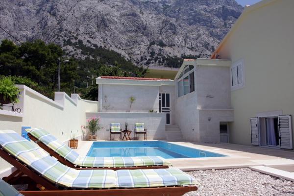 Biston Villa befindet sich in einer kleinen Region unter Biokovo Dorf Bast entfernt. 2 km vom Meer entfernt und bietet völlige Ruhe in der schönen Natur. Villa verfügt über einen Pool mit Abmessungen 7 x 3,5 m mit Gegenstromanlage schwimmen. Das Haus befindet sich im Innenhof umschlossen sind ein Parkplatz und eine Garage, einen Garten mit Liegewiese und einer Sommerküche mit Grill. Hervorragend ausgestattete und funktionelle für einen Familienurlaub.