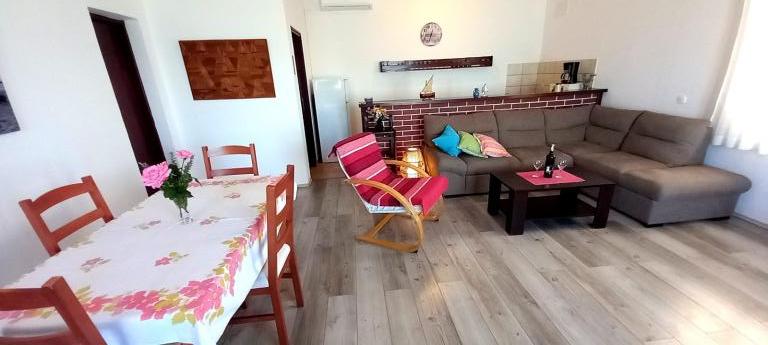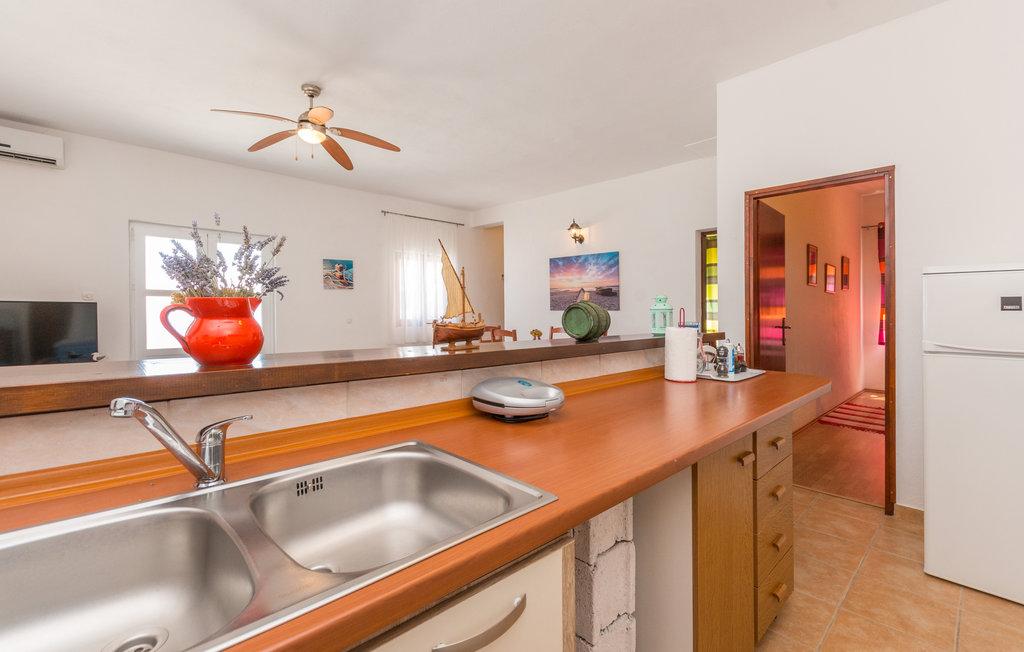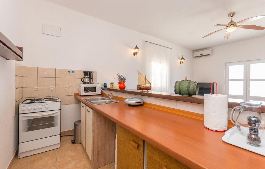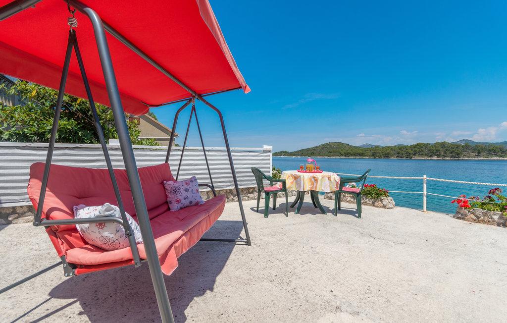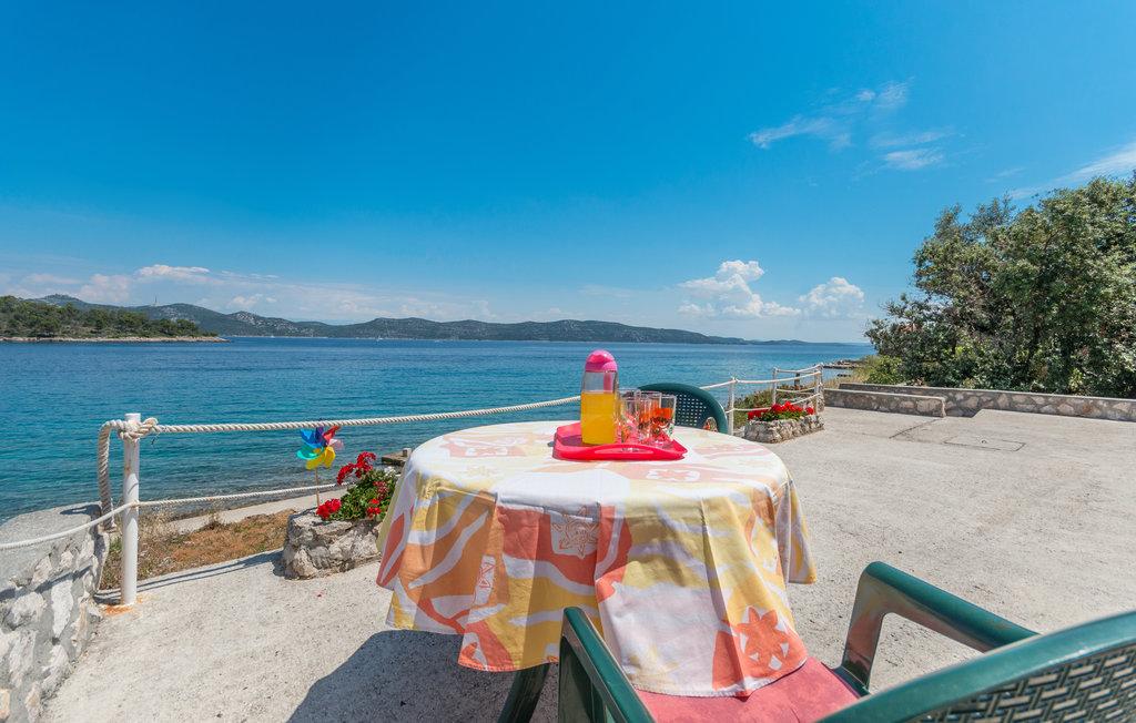 Eine geräumige Terrasse mit bequemen Liegestühlen und Sonnenschirmen und herrlichem Meerblick lädt zum Verweilen ein. Entspannen Sie sich mit Ihrer Familie in dieser angenehmen Unterkunft. Mali Iž, im mittleren Kanal zwischen Ugljan und Dugi Otok gelegen, ist von weiteren kleinen Inseln umgeben. Fähren und Boote ermöglichen eine schnelle Anreise. Die Restaurants servieren gute Weine aus der Region und köstliche dalmatinische Küche. Das Ferienhaus besteht aus einem großzügigen Wohn-/Essbereich mit offener Küche, zwei Schlafzimmern und einem Badezimmer. Ein Schlafzimmer ist mit einem Doppelbett (160 x 200 cm) ausgestattet, das andere mit einem Etagenbett (90 x 200 cm). Die geräumige Terrasse mit Meerblick liegt nur 10 Meter vom Meer entfernt. Neben dem Haus befindet sich eine Feuerstelle mit Grillmöglichkeit. Kostenlose Parkplätze stehen in der Nähe der Unterkunft auf einem öffentlichen Parkplatz zur Verfügung.