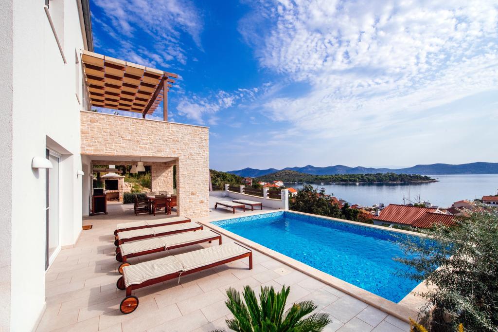 Entspannen Sie sich in der Ruhe und Stille der Villa Aya auf der schönen Insel Iz. Die Insel Iz ist direkt vor der Tür des Nationalparks Kornati entfernt. Von Zadar, eine Stadt mit 3000 Jahren lange Geschichte, ist eine Stunde und eine Hälfte mit der Fähre oder 40 Minuten mit dem Schnellboot entfernt. Seine Lage und einzigartige Natur mit wilder auch, noch ökologisch erhaltene Natur. Seit etwa Iz von zehn Inseln, von denen alle ein Boot oder mieten, können Sie eine Tour durch die Bucht und den Strand, völliger Abgeschiedenheit und Intimität genießen. Die besondere Atmosphäre, die unsere Insel hält macht es ideal für den Familienurlaub und Urlaub Ihrer Seele. Neue moderne, komfortabel eingerichtete Villa Aya mit beheiztem Pool hat einen schönen Blick auf das Meer und die benachbarten Inseln. Bay Knež auf der Handfläche befindet. . Die Villa verfügt über drei Schlafzimmer, drei Bäder, Wohnzimmer, Küche und Esszimmer, die Teil der Außenterrasse mit Pool sind, Grill. Das Parken ist vor dem Haus zur Verfügung gestellt. Kleine Haustiere sind willkommen.