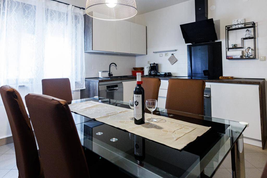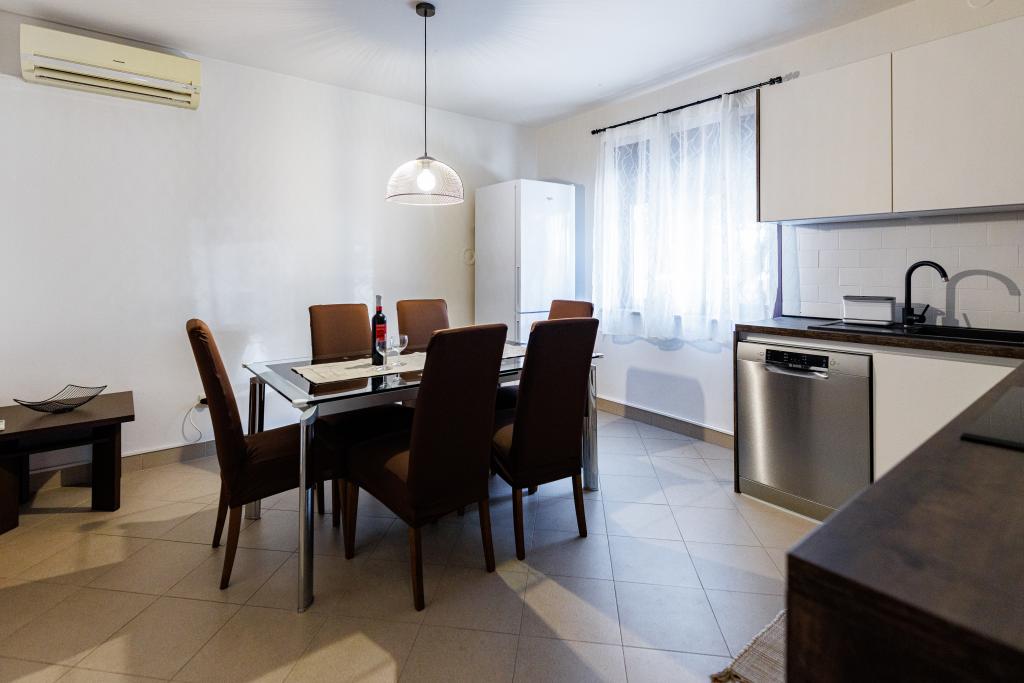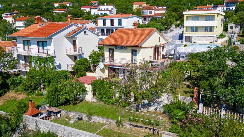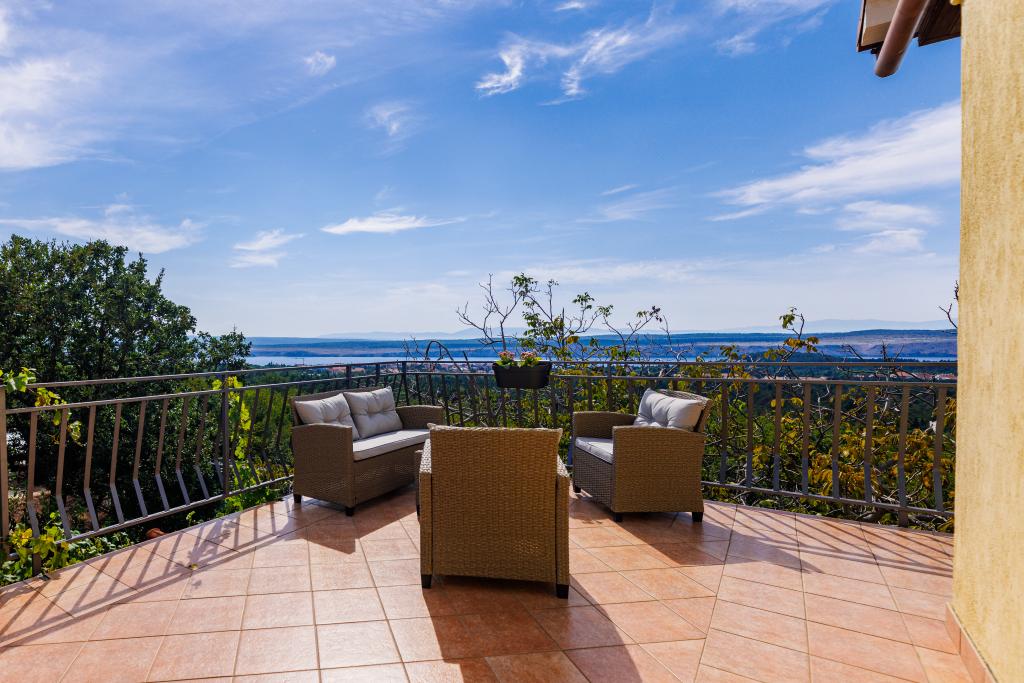 Das Ferienhaus VENAMI mit Panoramablick auf das Meer und die Insel Krk liegt in einem ruhigen Teil von Jadranovo. Drei Schlafzimmer, zwei Badezimmer, eine Küche mit Essbereich und Wohnzimmer sowie eine große Terrasse sorgen für einen rundum gelungenen Aufenthalt.